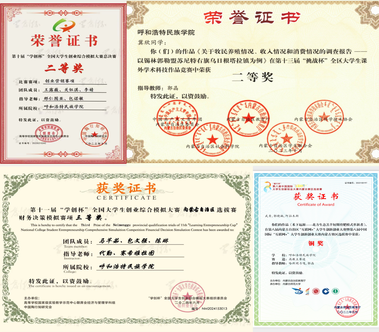 学院教师教研成果丰硕:主持参与国家及自治区社科、自然科学基金等项目50项,发表论文300余篇,出版著作、教材等50多部,获专利6项;拥有自治区英才兴蒙工程六类人才4人,建有绿色乡村振兴研究基地、自治区教科文卫体系统职工创新工作室各1个,获批自治区一流课程2门、校级科研创新团队4个;教学方面获校级课程思政比赛奖3项、教师教学创新大赛奖3项,“课程思政”优秀教学案例入选4项。上述成果有效提升了学院学术影响力,为学科发展与人才培养提供了坚实支撑。