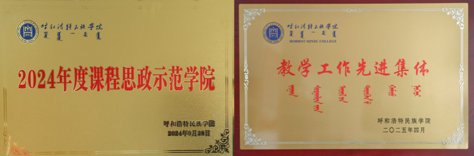 2024年,完成了自治区级一流课程《常微分方程及其应用》的“知识图谱”制作工作,学院被评为校级课程思政示范学院、教学工作先进集体,建设《数学分析》《概率论与数理统》等校级课程思政示范课程。额尔敦布和教授在《中国教育报》发表署名文章《打造创新融合课程,提高人才培养质量》、在《光明日报》刊发署名文章《为加快发展新质生产力贡献高校力量》。