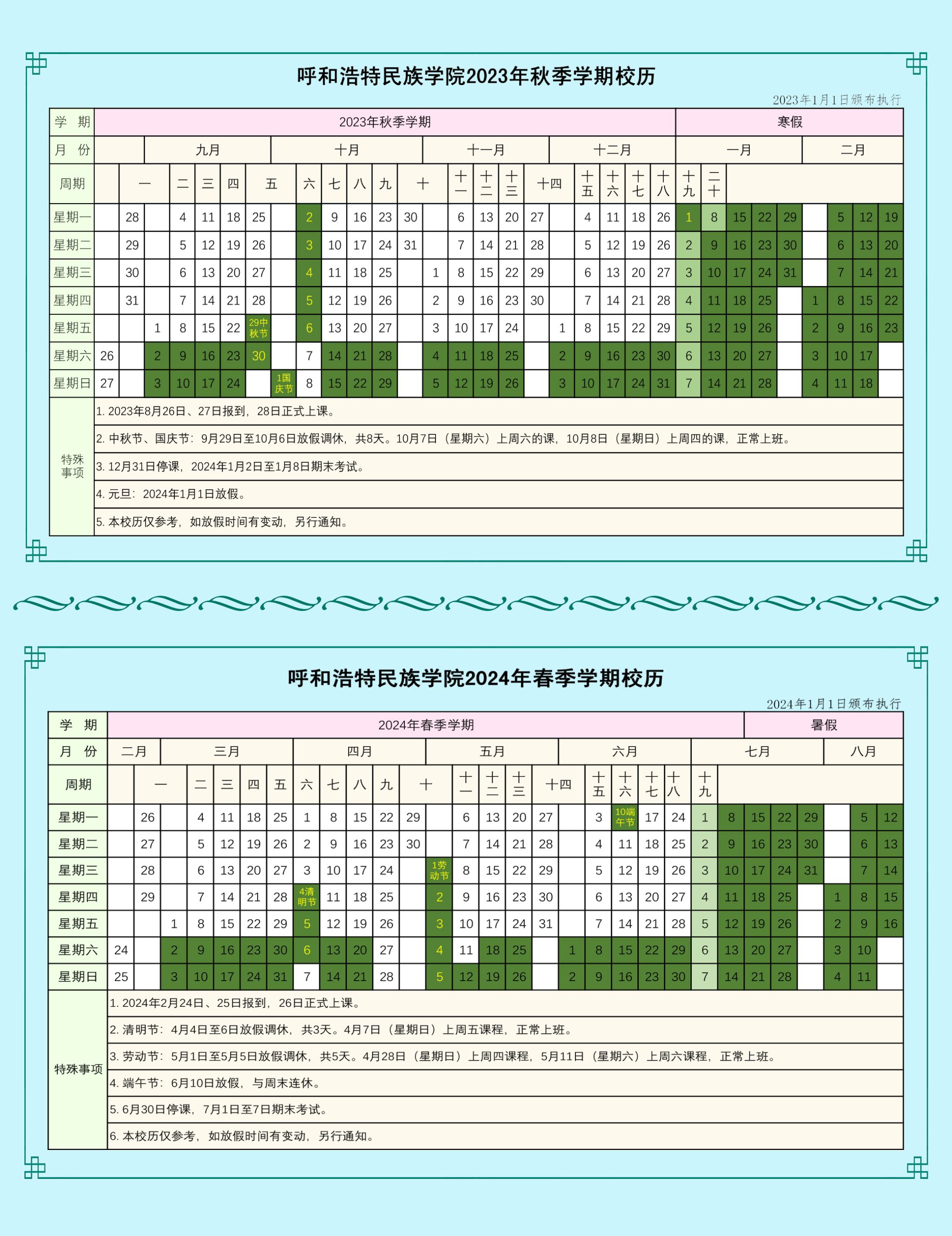 MILE米乐集团2023-2024学年校历