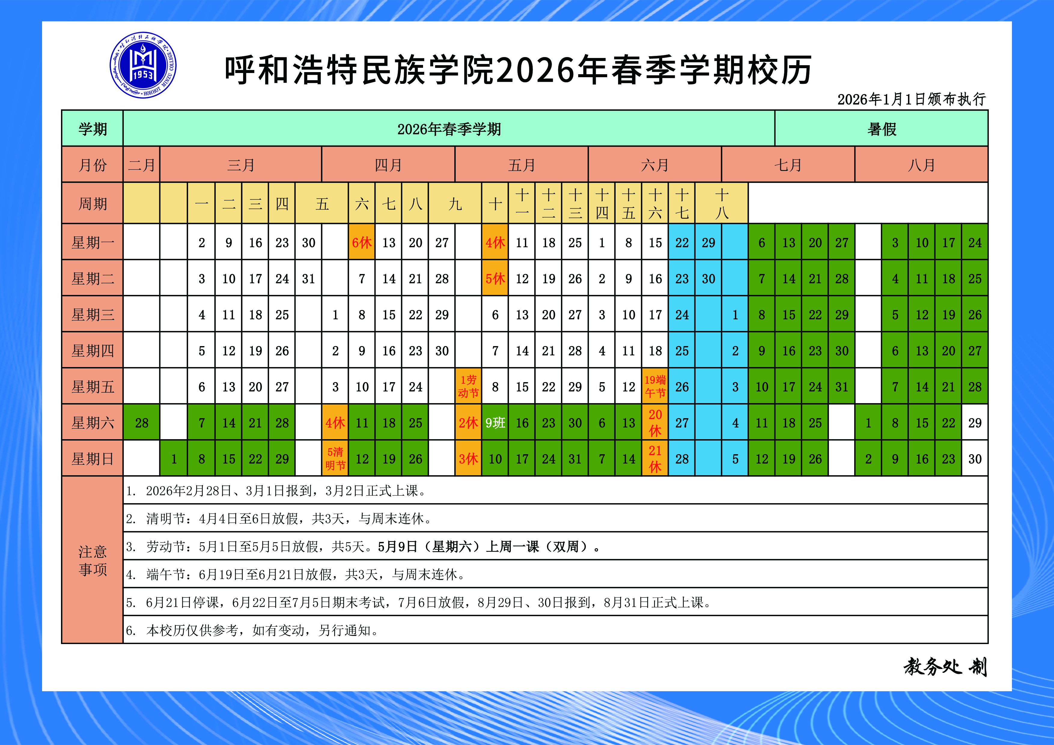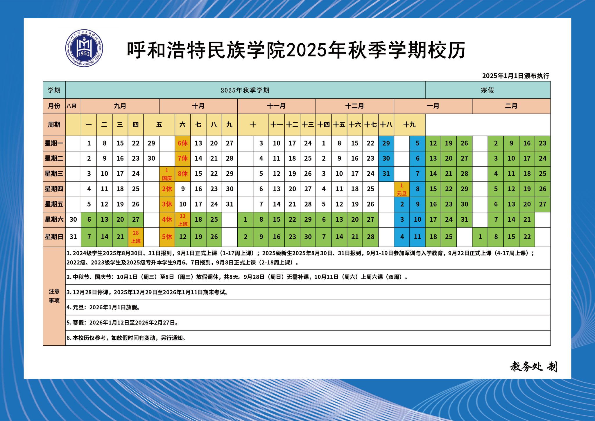 MILE米乐集团2025-2026学年校历