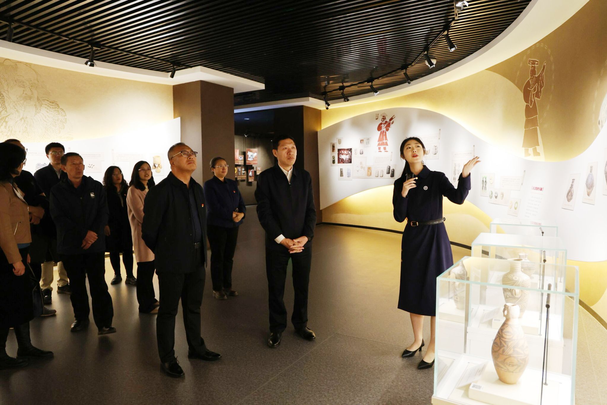 褚亚申一行参观了校史馆、铸牢中华民族共同体意识教育馆和研究基地,并详细了解了学校“两馆两廊一园”阵地建设情况及经验做法。
