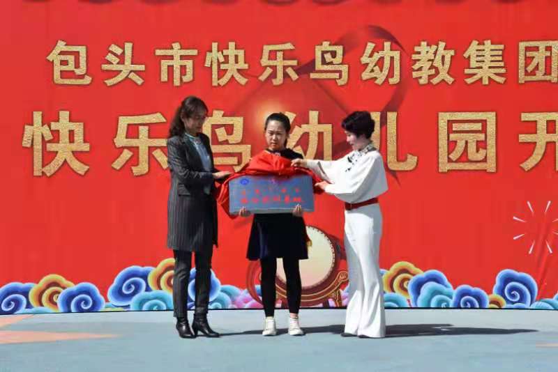 为了加强教育教学实践环节,促进学生实践能力和专业技能的提高,进一步加强教育实习基地的建设力度,2021年5月29日学前教育学院副院长其其格、实践教研室主任乌日罕赴包头九原区,在恒大ž快乐鸟幼儿园开业之际,与包头九原区快乐鸟幼教集团签订了教育实习实训基地合作共建协议书,并举行揭牌仪式。