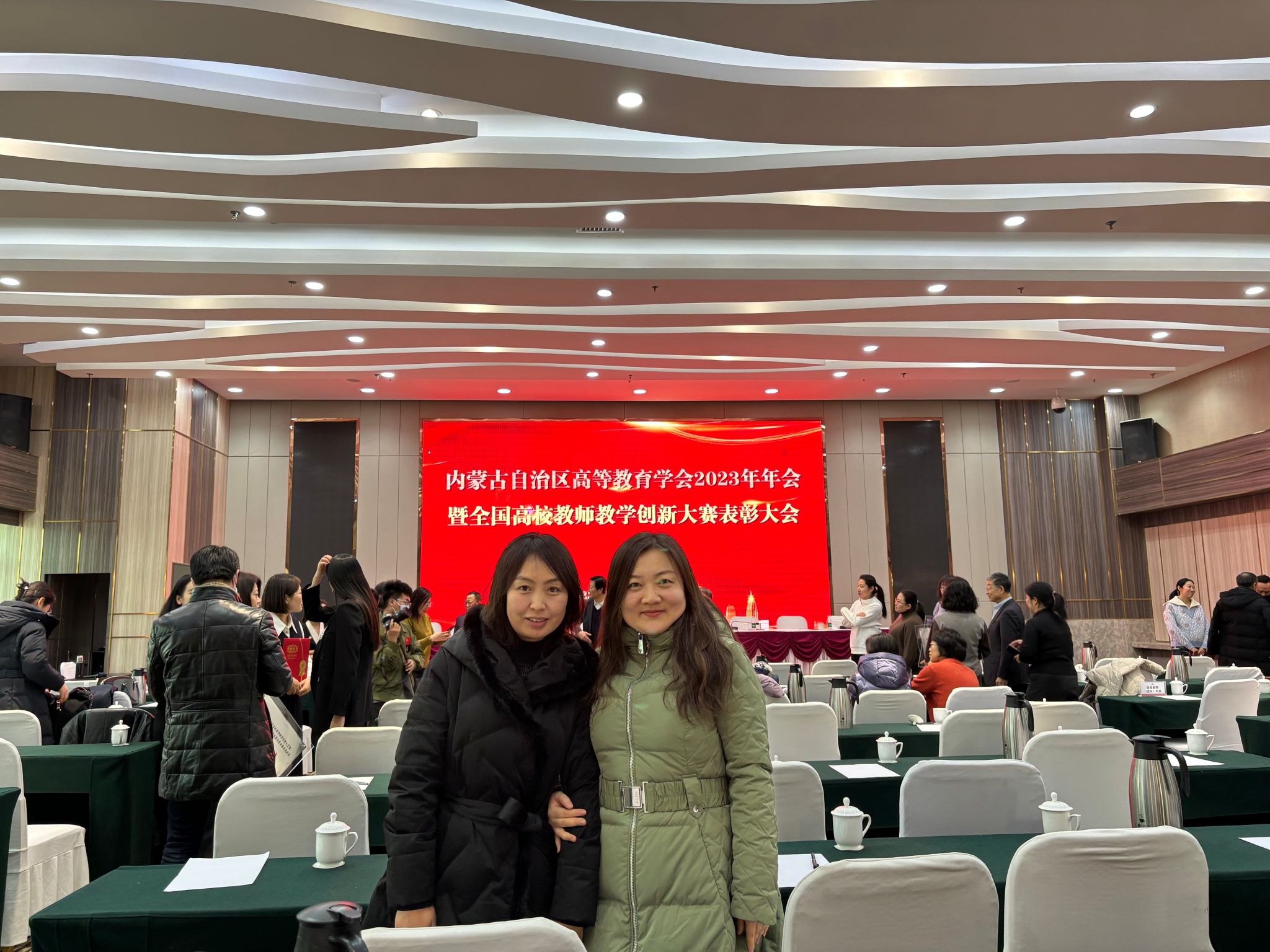 12月17日上午米乐官网教师连娜和乌日罕应邀参加在呼和浩特市宾悦大酒店举办的“内蒙古自治区高等教育学会2023年年会暨全国高校教师教学创新大赛表彰大会”。