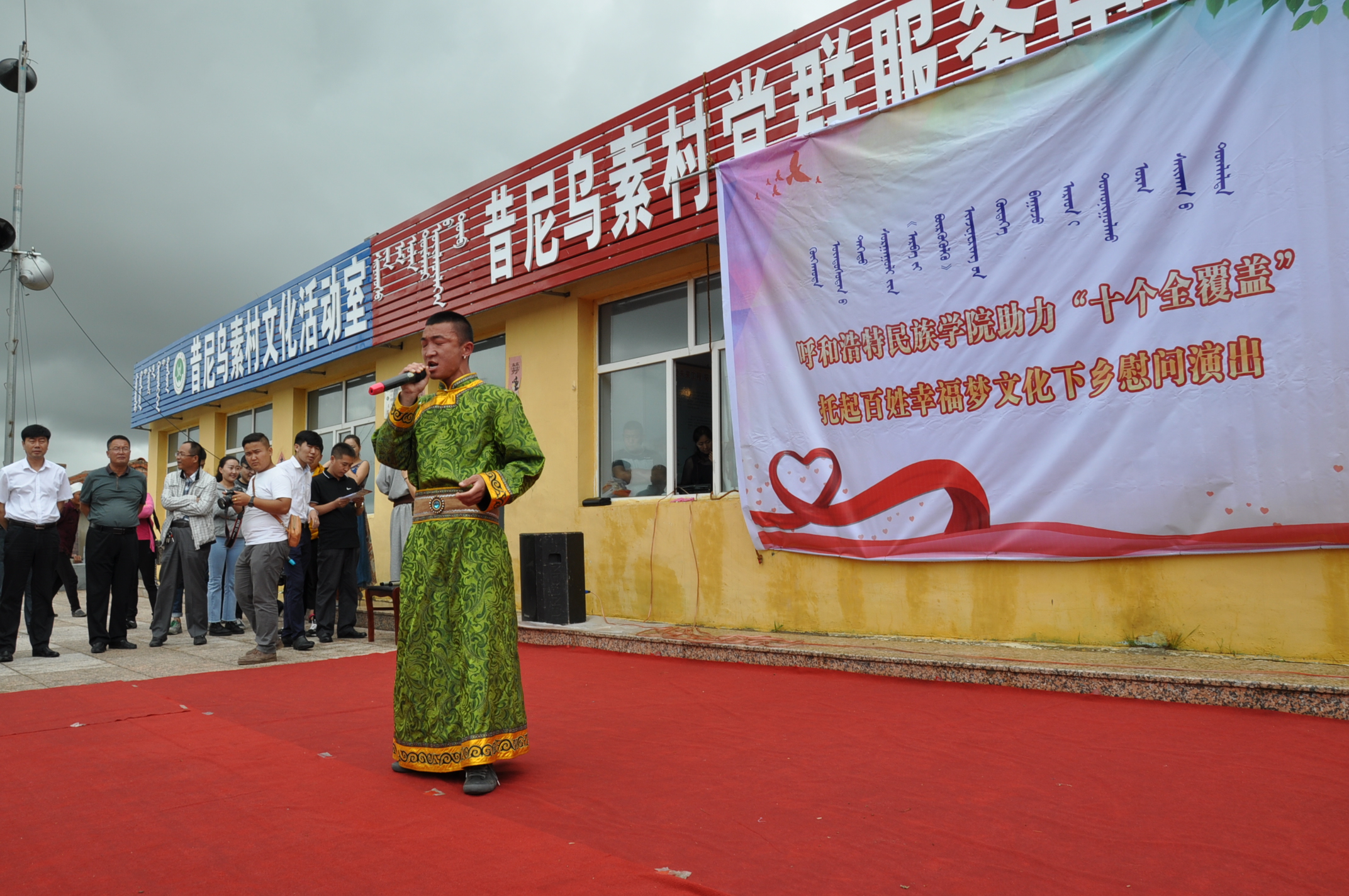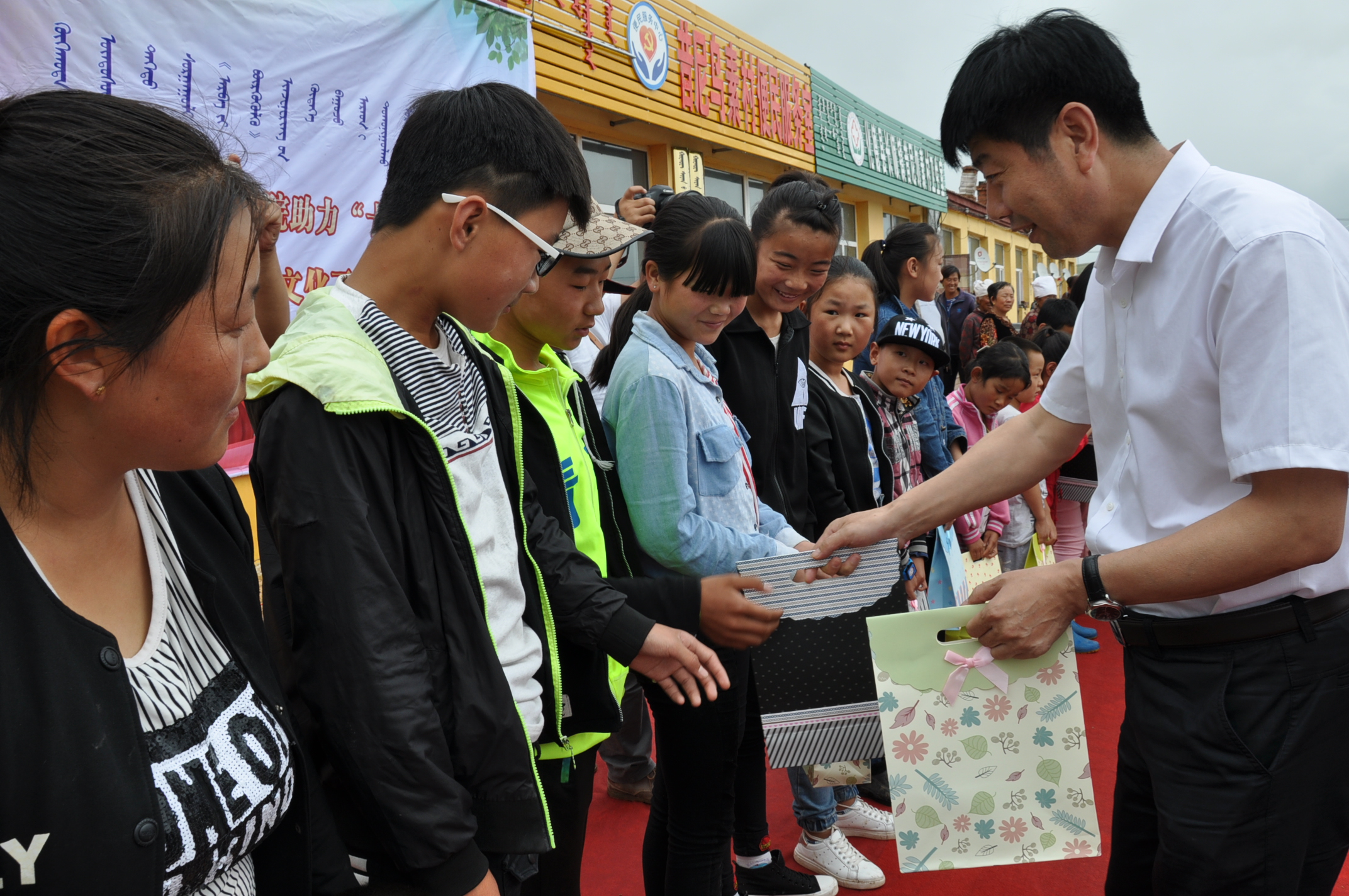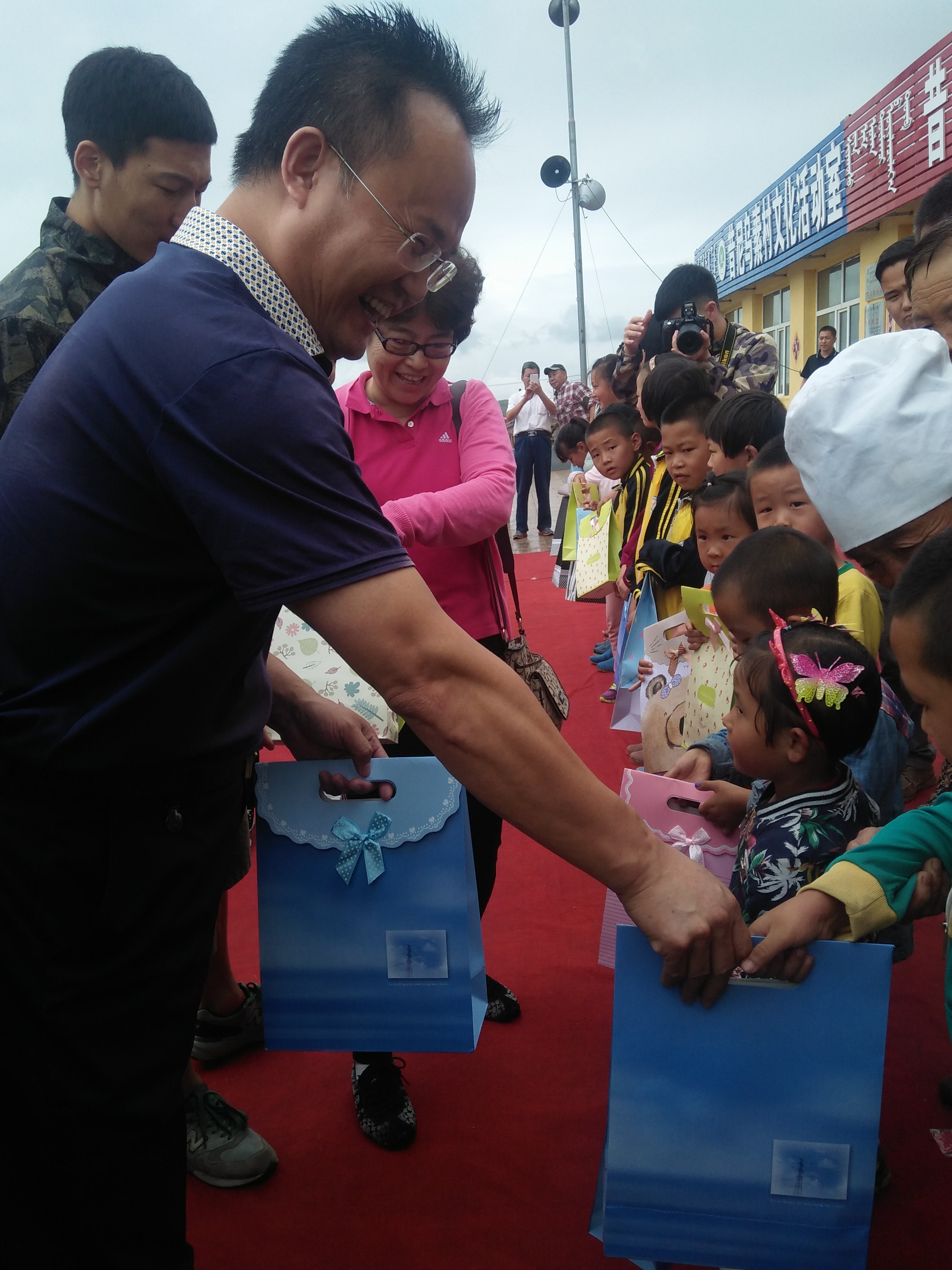 活动中,师生党员穿着蒙古袍,在雨中给村民们演唱了精心排练的《酒歌》、《红梅赞》、《阿巴嘎白山》、《伊犁河的月夜》、《民心》等优美动听的歌曲,演出在经久不息的掌声及欢歌笑语当中落下了帷幕。演出期间,给村里的三十多名孩子赠送了文具、玩具和水杯等礼品,表达了教育系师生党员对孩子们的一份关心与呵护。