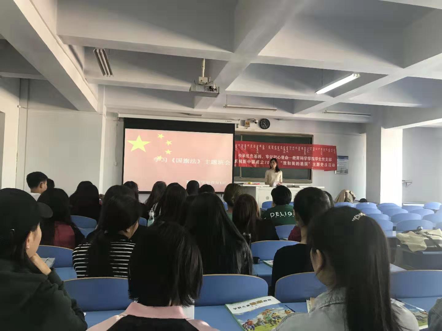 中华人民共和国成立70周年之际,米乐官网为了维护国旗的尊严,进一步在我院全体学生中普及国旗法相关知识,提高大学生对国旗的认识,增强大学生的国家观念,发扬爱国主义精神。我院开展学习《中华人民共和国国旗法》专题教育活动,2019年9月25日,我院应学校要求开展了以“学习和践行《国旗法》,做新时代的爱国者”为主题的活动。