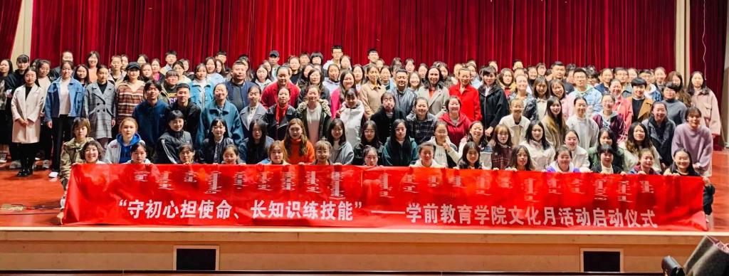 结合“不忘初心、牢记使命”主题教育,为进一步提升学前教育专业学生的专业技能,提高学生的综合素质,使学生不仅掌握扎实的理论知识,同时形成服务社会、投身幼儿教育事业的实践能力,11月7日19时学前教育学院党总支组织全体师生在图书馆二楼报告厅举行“守初心担使命,长知识练技能”文化月活动启动仪式。