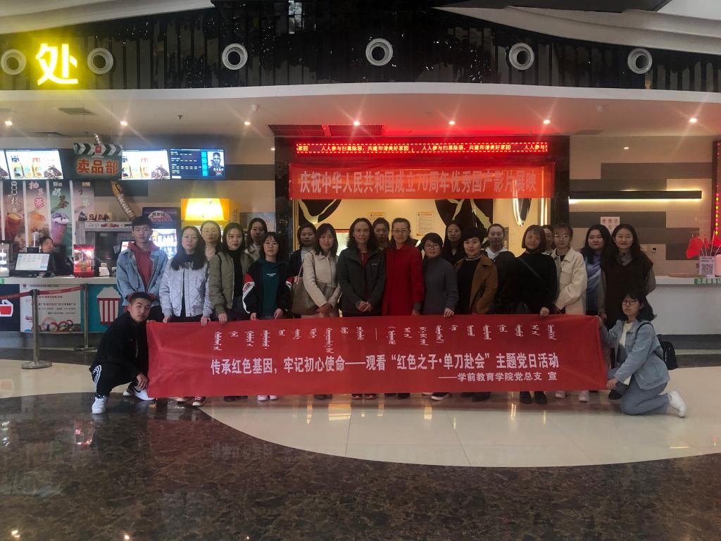 昔峥嵘岁月,赞先烈丰功伟绩。为增进学前教育学院师生党员对先烈英雄事迹的了解,增强爱国主义情感,学院党总支于11月7日组织30名师生党员集体赴滨海电影院观看《红色之子·单刀赴会》影片。共同见证英雄乌兰夫不避艰险赴鸿门,力排众议解危局的英雄壮举。