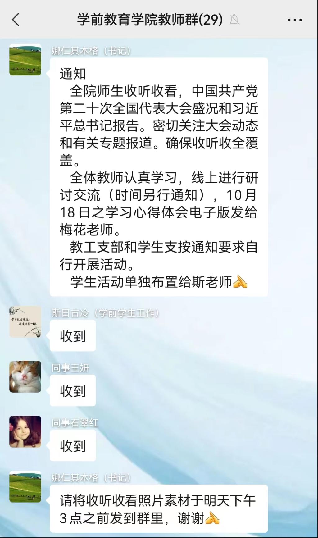 为深入学习贯彻党的二十大精神,切实把思想和行动统一到党中央决策部署上来,10月16日上午,学前教育学院党总支组织全体教师采用线上方式开展集中自学,学习后大家围绕大会主题,展开学习讨论、交流心得。
