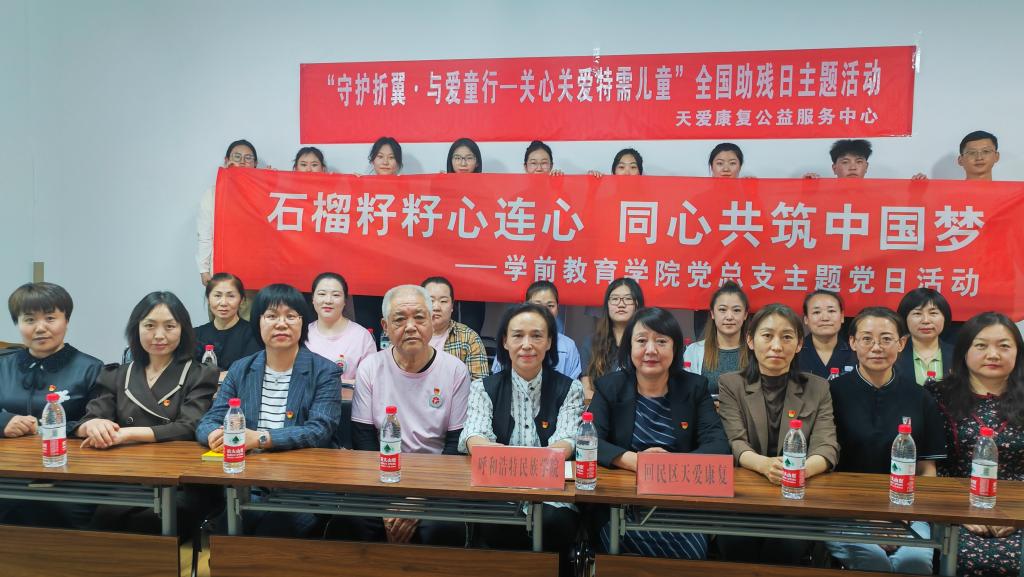 5月18日下午,学前教育学院党总支组织全体教师和部分学生党员前往呼和浩特市回民区天爱康复公益服务中心开展“石榴籽籽心连心,同心共筑中国梦”主题党日活动。