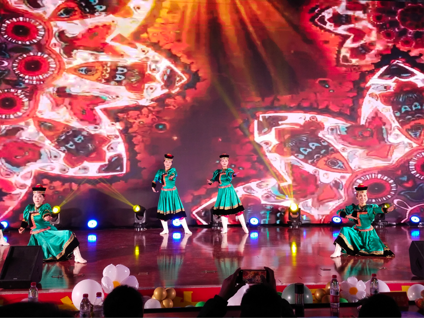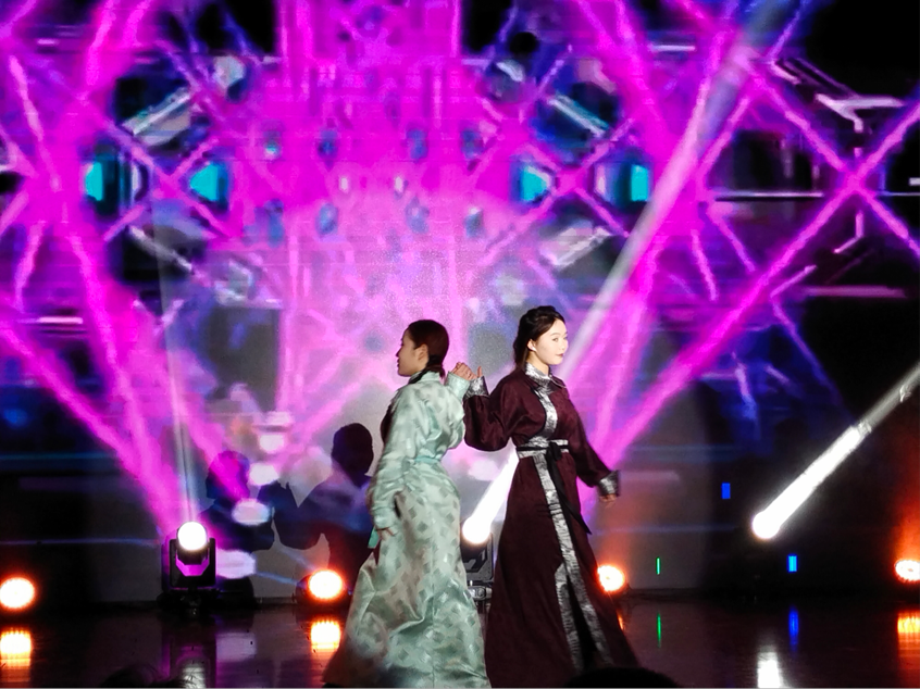 青春洋溢现代感十足的走秀舞、宽广豪迈的舞蹈《律动》、配乐诗朗诵《月光下的中国》、动感群舞《哈塔日希》展示了米乐官网学子独有的精神风貌和独具魅力的艺术才华。