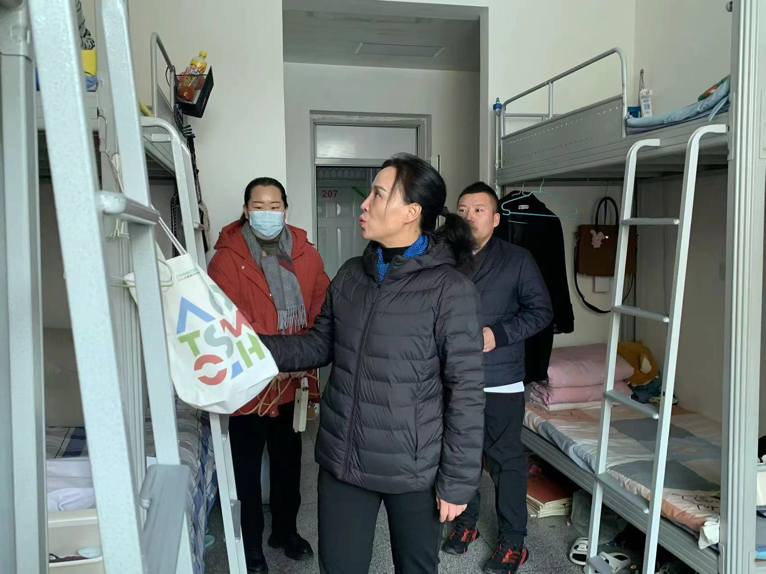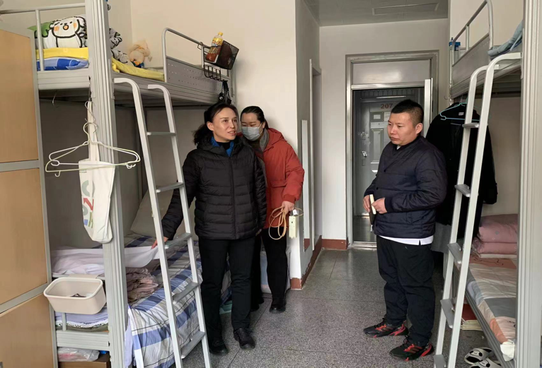 学前教育学院党总支书记娜仁其木格、团总支书记斯日古冷及学工办主任张璟华老师逐楼宇,逐楼层对各个宿舍进行安全卫生大检查,重点排查大功率电器使用、私拉电线、卫生、意识形态等情况并对存在问题进行梳理和整改,嘱咐同学们有困难及时联系辅导员,确保宿舍安全。