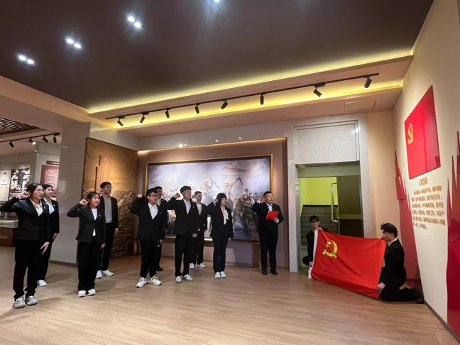 学院团总支书记斯日古冷同志带领学生党员面向鲜红的党旗、重温入党誓词,坚定入党初心。学生党员代表发言并表示将以革命先烈为榜样,继续发挥党的优良传统。
