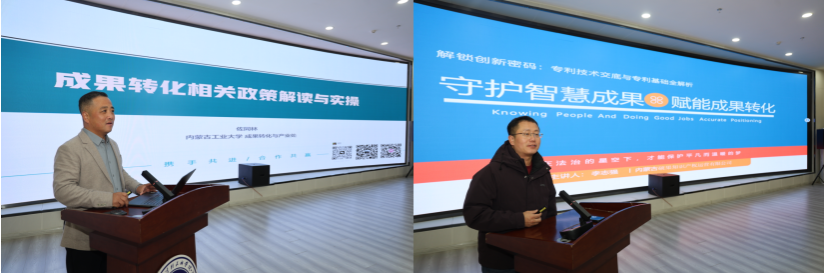 培训中,佐同林以《成果转化相关政策解读与实操》为题,围绕科技成果转化政策要点、转化路径模式、收益分配机制、校企对接实操等核心内容,结合自治区重点转化平台运营实践与典型案例,层层拆解、细致讲解,为师生明晰成果转化落地路径。李志强以《守护智慧成果 赋能成果转化》为题,聚焦专利类型界定、申报流程规范、材料撰写技巧、驳回风险规避及知识产权全链条保护等关键环节,手把手传授实操方法,精准破解科研人员申报堵点难点问题。
