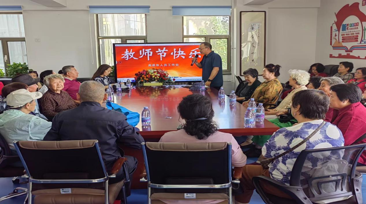 离退休人员工作处为每一位离退休教师献花,使他们切身体会到学校党委及组织的关怀,随后进行了座谈交流,老教师们畅所欲言,回顾躬耕教坛的教学经历。