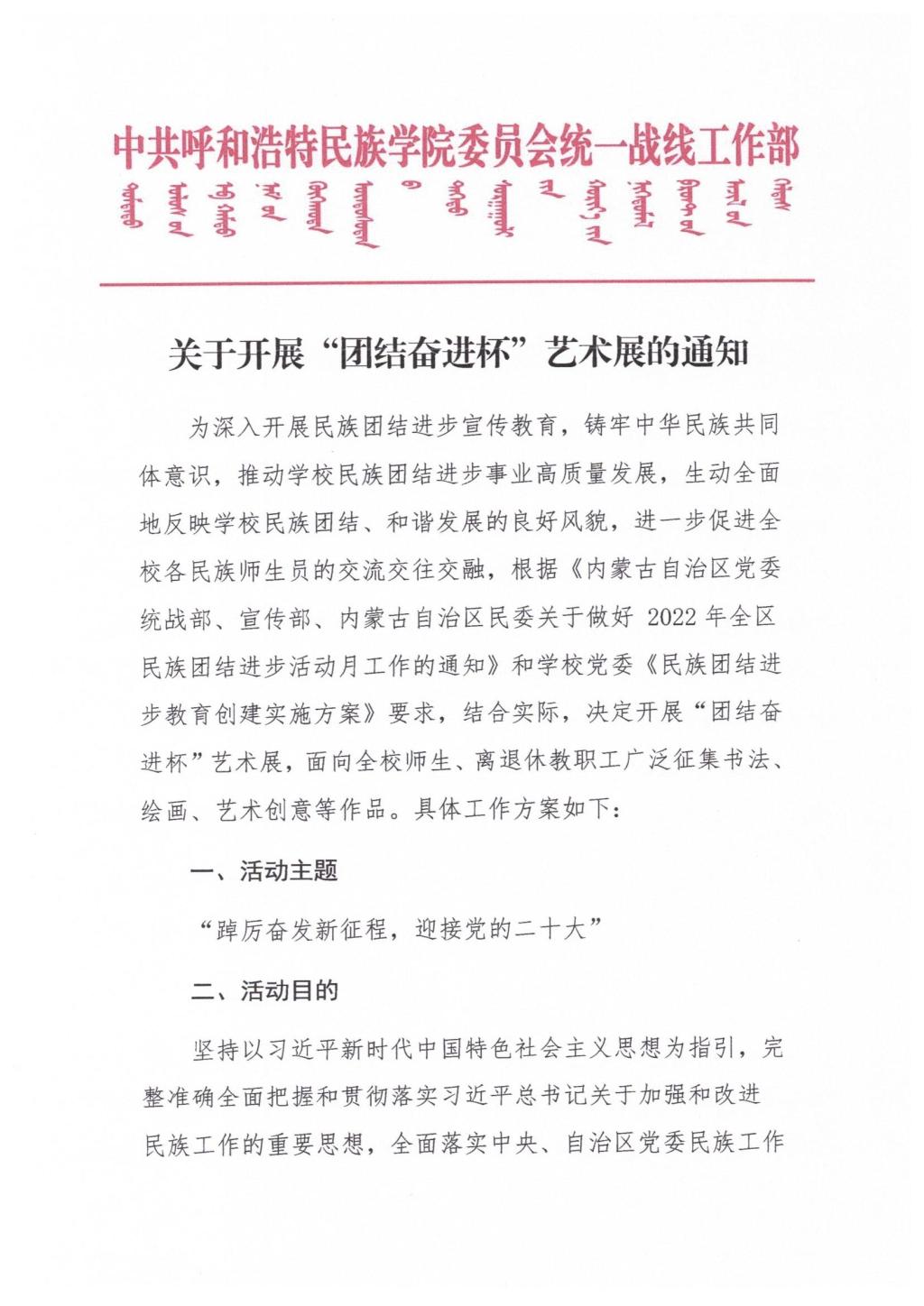 关于开展“团结奋进杯”艺术展的通知