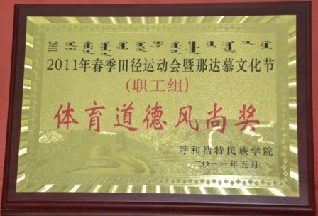 学院2011年春季田径运动会暨那达慕文化节中荣获“体育道德风尚奖”