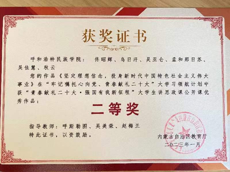 米乐官网学生获得2022年度自治区大学生讲思政课优秀作品二等奖