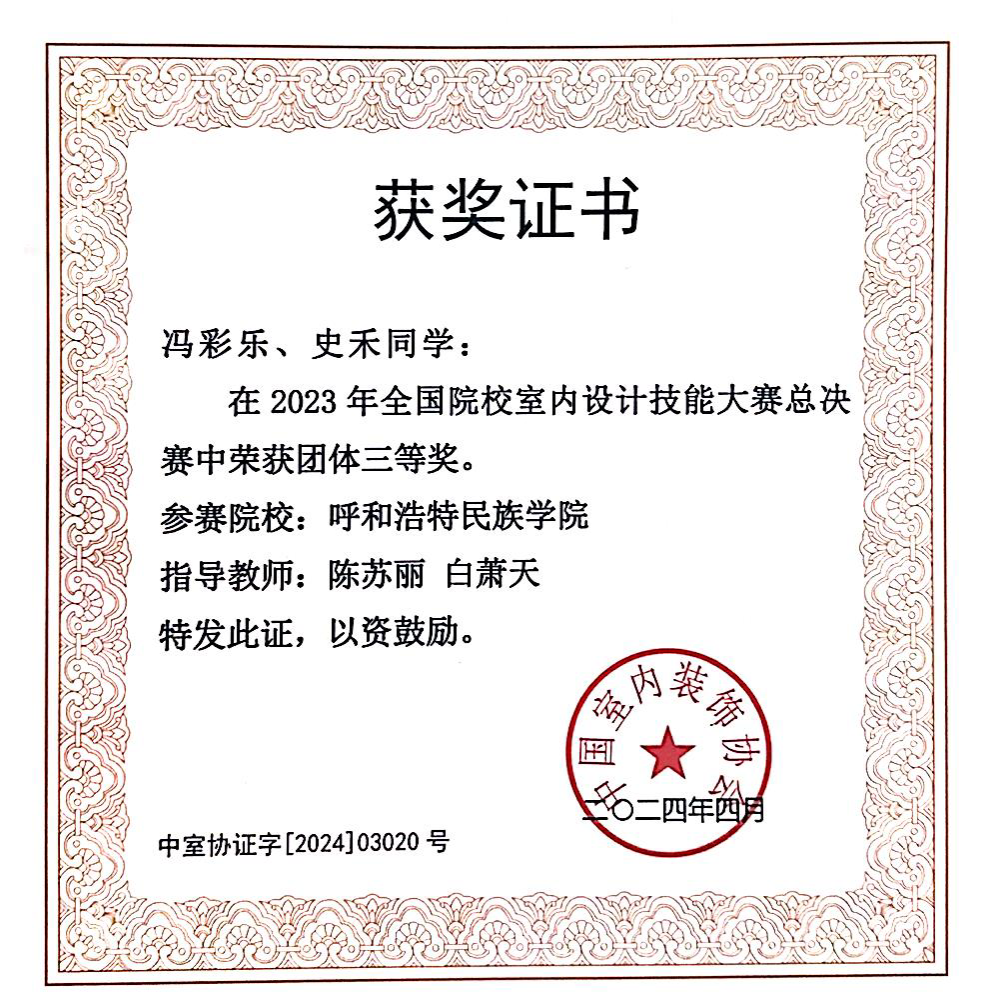 来自全国30多个省共1300余支参赛队参与角逐。米乐官网魏伟、伊丽亚两位教师指导的《尺壁寸阴--大学生活动中心设计》(学生:杨茹平、薛文静)和陈苏丽、白萧天两位教师指导的《对话达芬奇—大学生活动中心设计》(学生:冯彩乐、史禾)两项作品均荣获全国院校本科组团体三等奖,成为此次比赛中唯一获奖的内蒙古自治区本科院校,取得了我区在全国设计类竞赛线下赛事上的新突破!