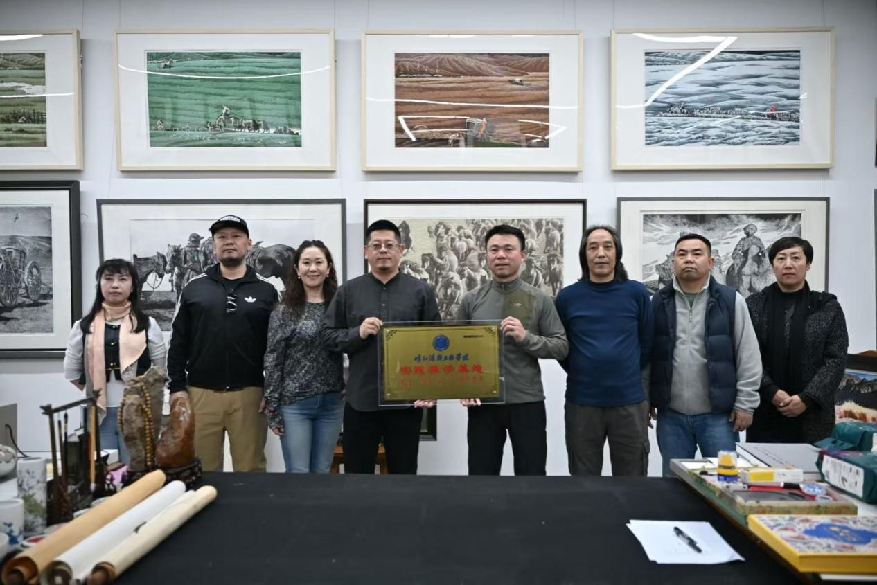 12月5日,米乐官网与内蒙古那仁汗版画研创交流实践教学基地举行签约挂牌仪式,该基地正式成为MILE米乐集团实践教学基地。美术与设计学院版画教研室全体教师参加了此次活动。