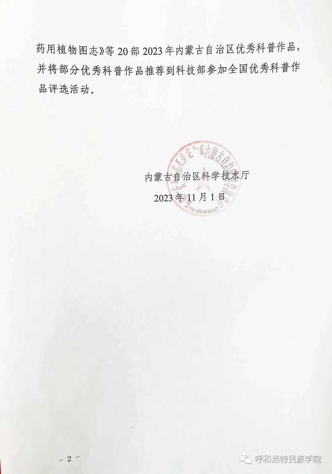 佳作上榜!米乐官网两部作品获评2023年内蒙古自治区优秀科普作品