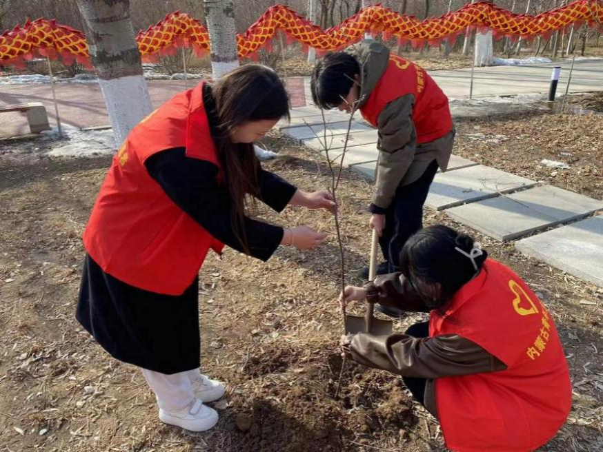 十年树木,聚木成林。为更好地践行总书记“绿水青山就是金山银山”的生态理念,用实践参与到北方重要生态安全屏障建设中来,3月12日,美术学院党总支组织学生党员,赴内蒙古“红石榴”民族团结主题公园,与北疆应急保障志愿服务总队联合开展了志愿植树活动。