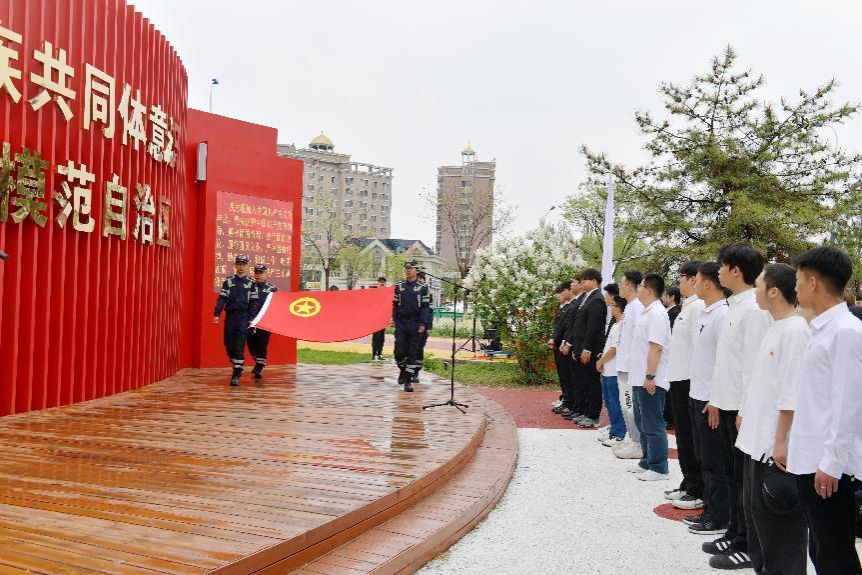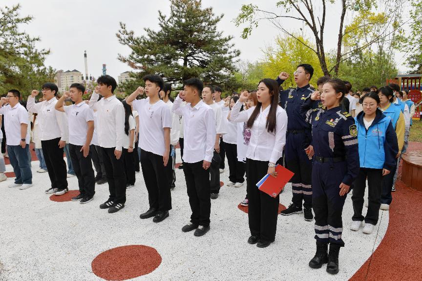 为深入学习贯彻习近平新时代中国特色社会主义思想,贯彻落实习近平总书记关于青年工作的重要论述,激发广大团员和青年纪念和传承五四精神,勇担青春使命、争做时代新人,4月28日上午,MILE米乐集团美术学院团总支与回民区团委、内蒙古北疆志愿服务联合会、内蒙古师范大学青年政治学院、内蒙古建筑职业学院等四家单位在回民区“红石榴”志愿服务主题公园联合举办了“青春奋进新时代 挺膺担当向未来”2024年集中规范性入团仪式。米乐官网团总支书记魏伟、辅导员吴丰林带领2024年新入团团员和“红石榴”志愿服务队成员参加活动。