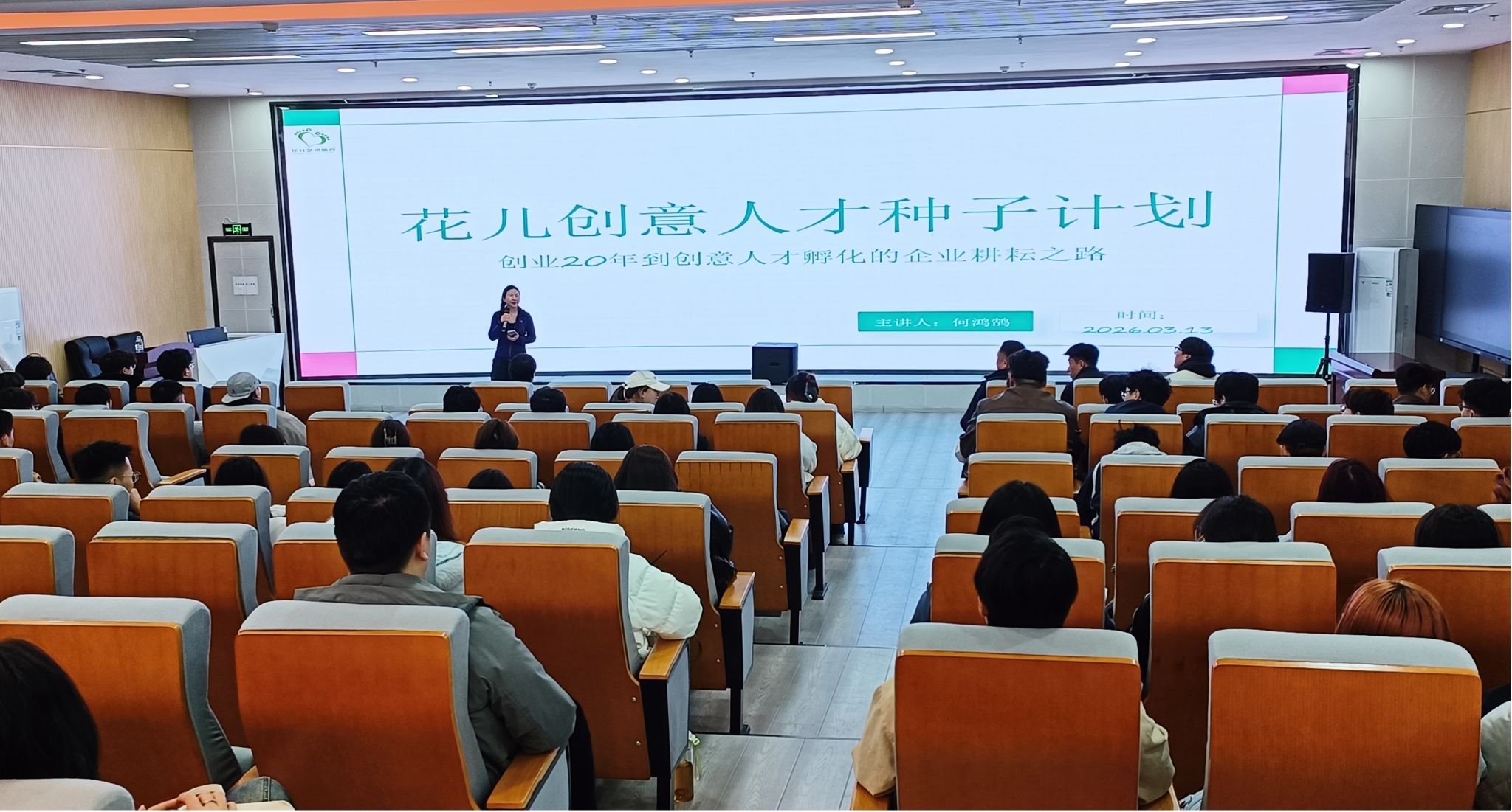 宣讲会上,重庆花儿艺术旅行负责人何鸿鹄分享了创业经历、非遗探索及“花儿种子计划”,并介绍了华合数智公司发展愿景与“华合杯”设计大赛征集赛道。本次招聘提供全栈开发工程师、实习服务顾问、非遗部产品销售、实习计调等岗位,计划招聘 12-22 人。互动环节中,企业代表现场解答学生疑问,8名学生当场投递简历,20余名学生加入“华合杯”设计大赛交流群。