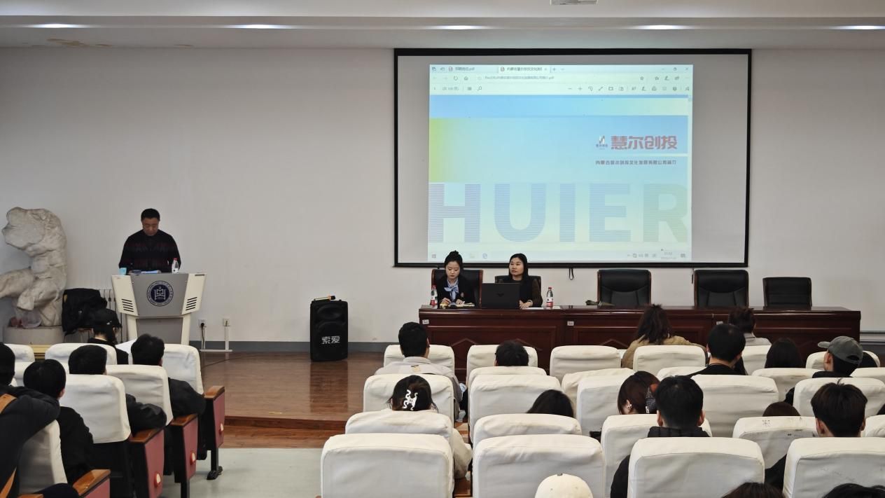 内蒙古慧尔创投文化发展有限公司人力资源部经理徐彩玉作为主讲嘉宾,聚焦招聘需求,详细介绍了公司发展历程、业务范围、优质业务案例,重点解读了本次招聘的6大岗位(涵盖平面设计、项目执行、咨询策划等)、计划招聘12人的具体要求,同时清晰说明薪资待遇、系统培训模式及完善的晋升渠道,让在场学生全面了解企业招聘标准与职业发展路径,为精准投递简历、适配岗位提供指引。