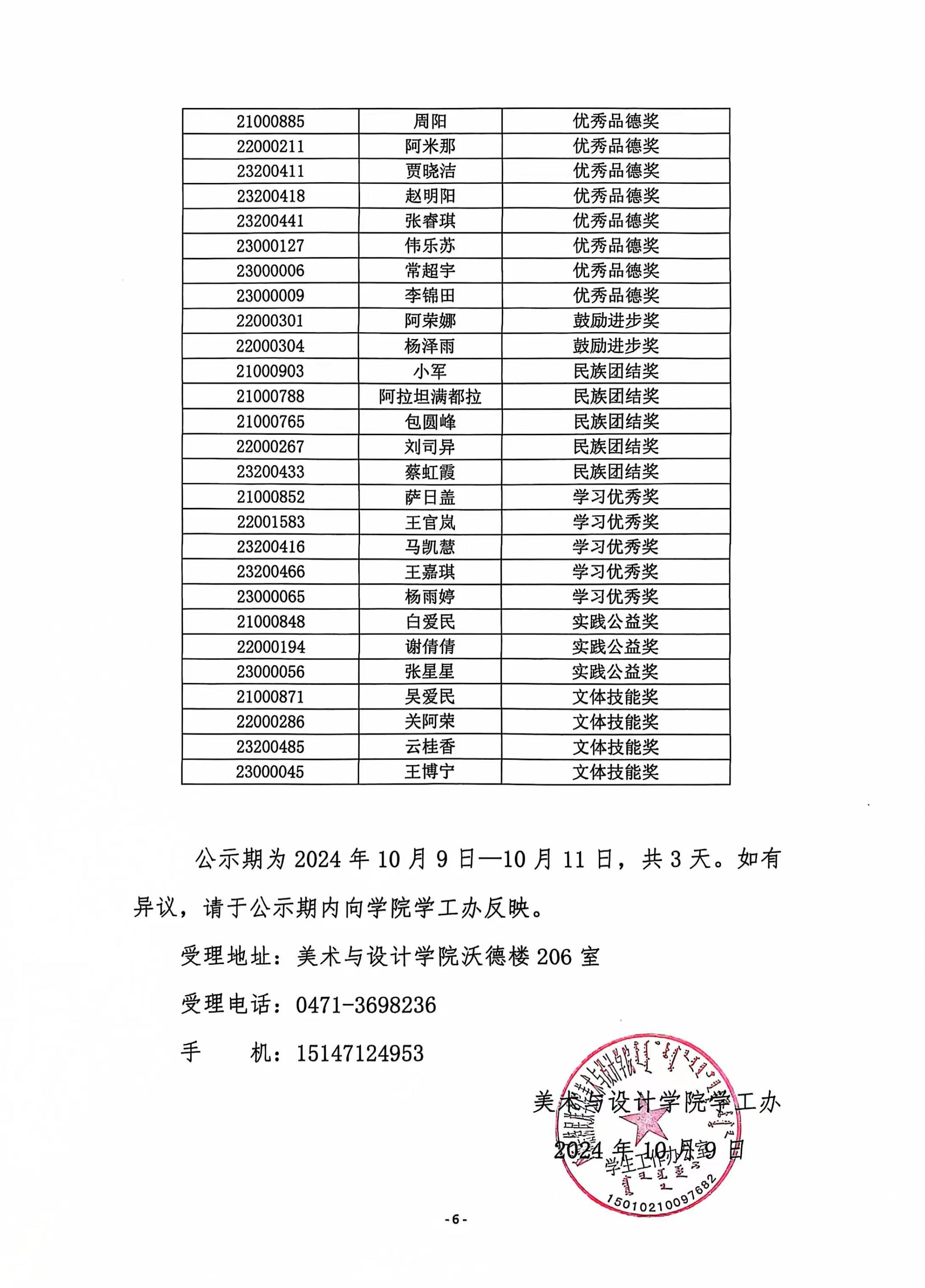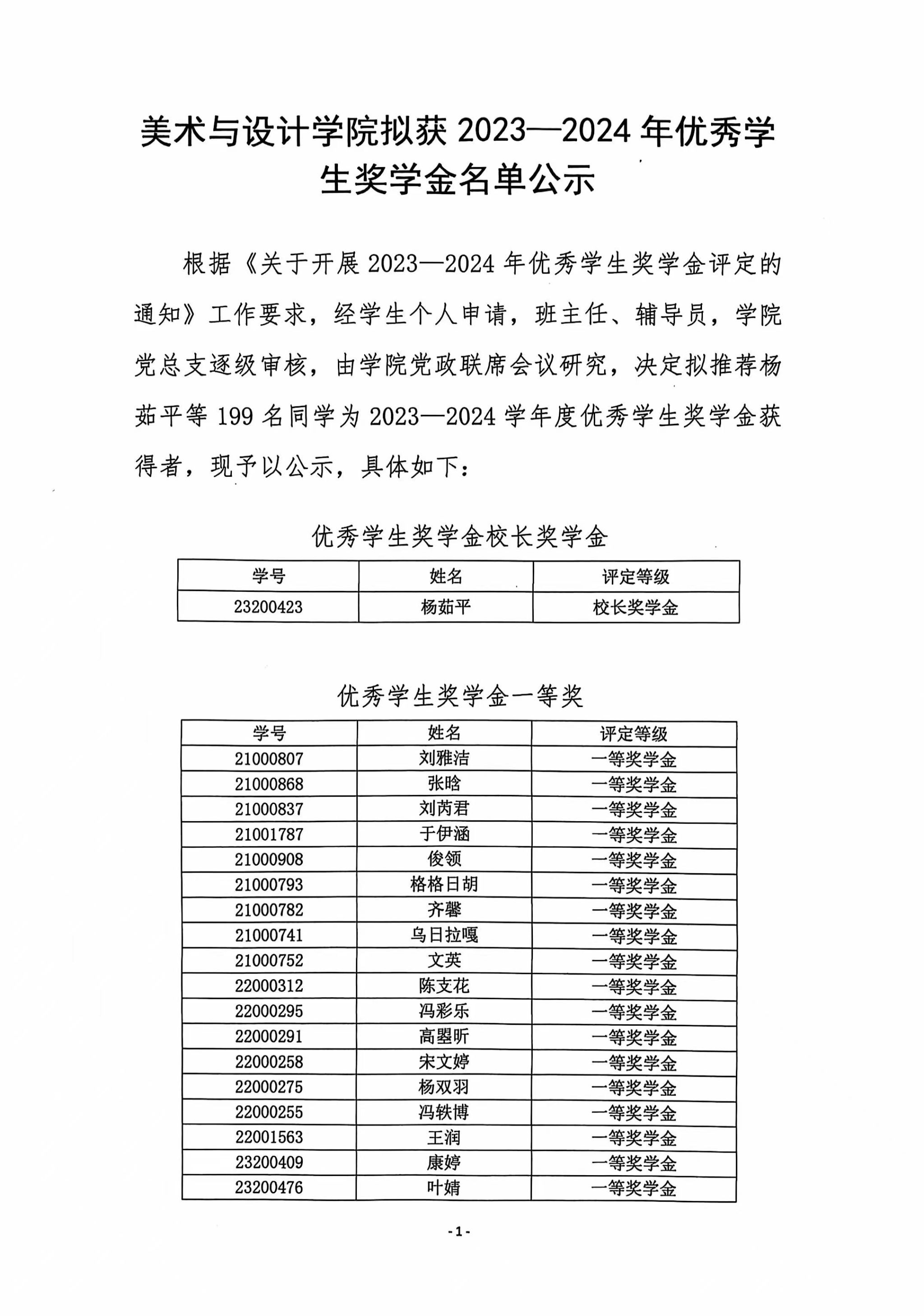 美术与设计学院拟获2023—2024年优秀学生奖学金名单公示