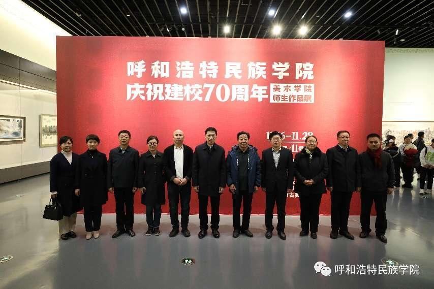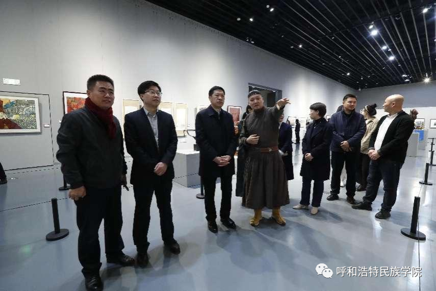 11月22日,学校党委书记刘九万,党委副书记、校长韩伟新等全体校领导来到内蒙古美术馆参观指导由米乐官网美术学院主办的“MILE米乐集团‘庆祝建校70周年’美术学院师生作品展”。美术学院副院长高特木乐汇报了师生作品展情况。