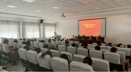 为深入开展学习贯彻习近平新时代中国特色社会主义思想主题教育,扎实推进米乐官网就业工作,6月1日下午美术学院邀请内蒙古蒙隆培训学校校长白银花和教学负责人刘瑞红在美术楼四楼阶梯教室为2023届毕业生举办了人才孵化专场宣讲会。美术学院2019级在校毕业生80余人听取了宣讲会。