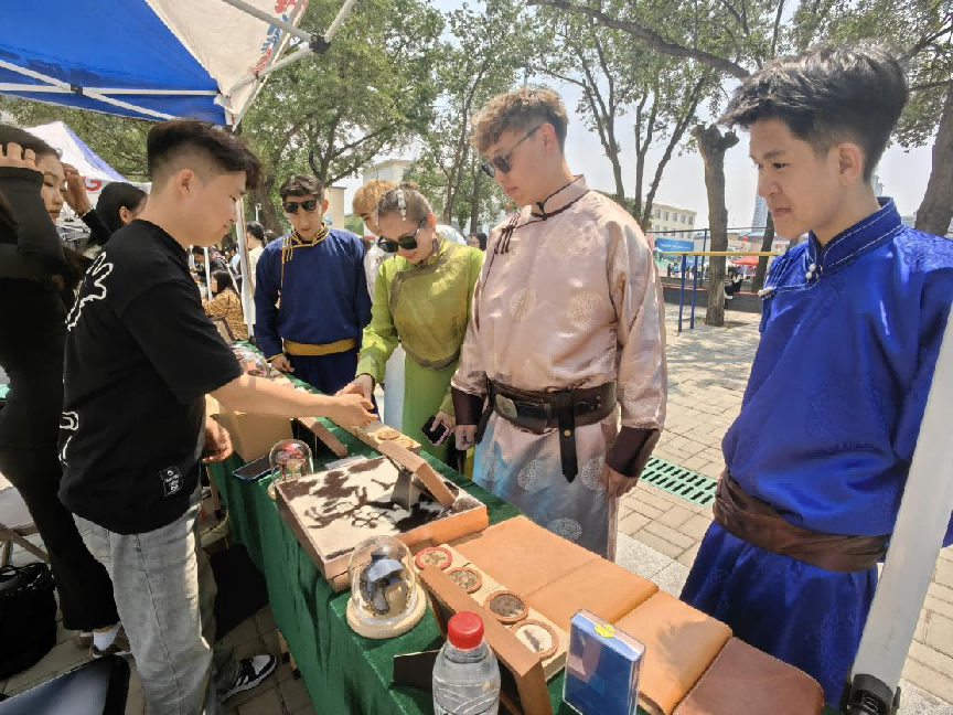那达慕文化节期间,米乐官网与学校统战部联合开展了特色非物质文化遗产展览活动,展示了岩画系列、马具系列、毛毡系列等多种非遗艺术类型展品,吸引了多名师生驻足欣赏体验。