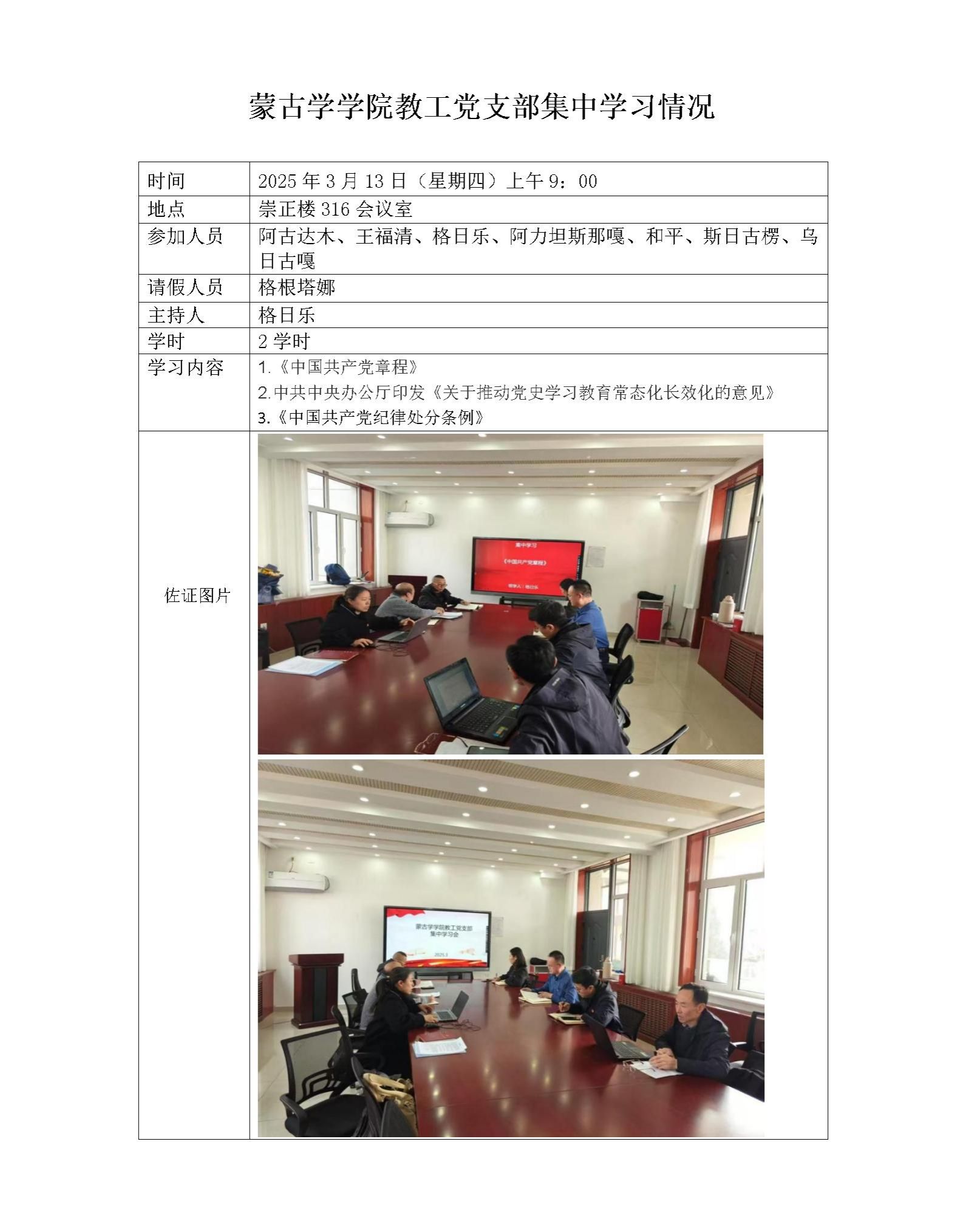 蒙古学学院教工党支部集中学习情况