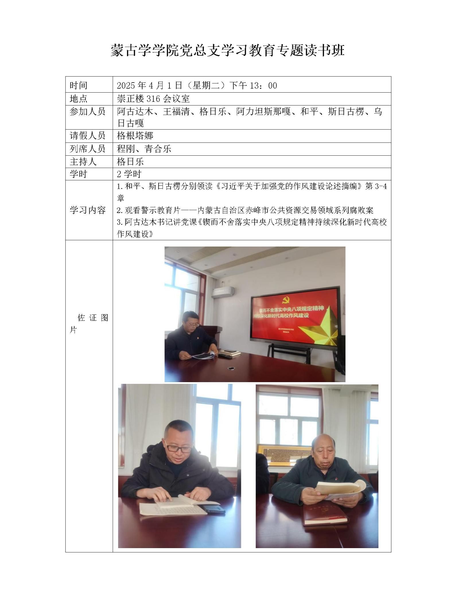 蒙古学学院党总支学习教育专题读书班