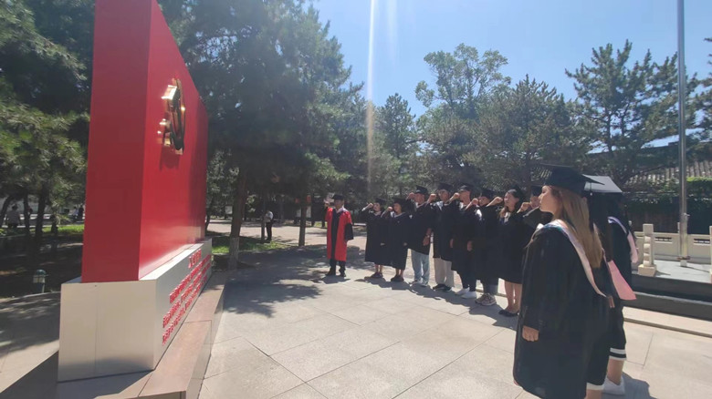 为进一步加强毕业生党员的思想教育,坚定学生党员的理想信念,落实常态化疫情防控下毕业生文明离校等各项工作,2022年7月6日上午,蒙古学院党总支在崇正楼广场举办2022届毕业生党员教育暨在校重温入党誓词活动。此次活动由学生党支部书记程刚主持,全体辅导员老师以及毕业生党员参加活动,全体毕业生党员在党总支书记周双喜的领誓下,面向鲜红的党旗重温入党誓词。