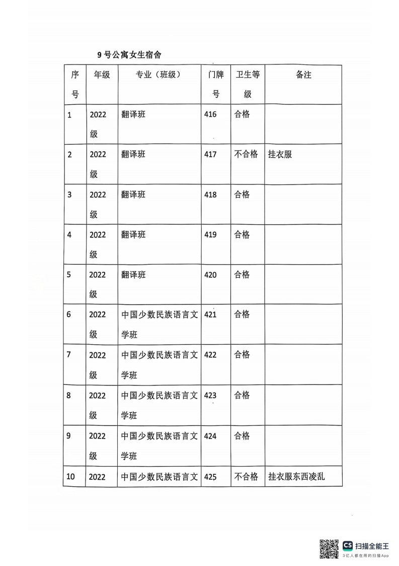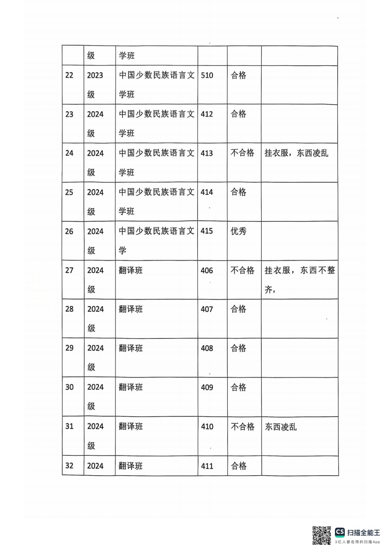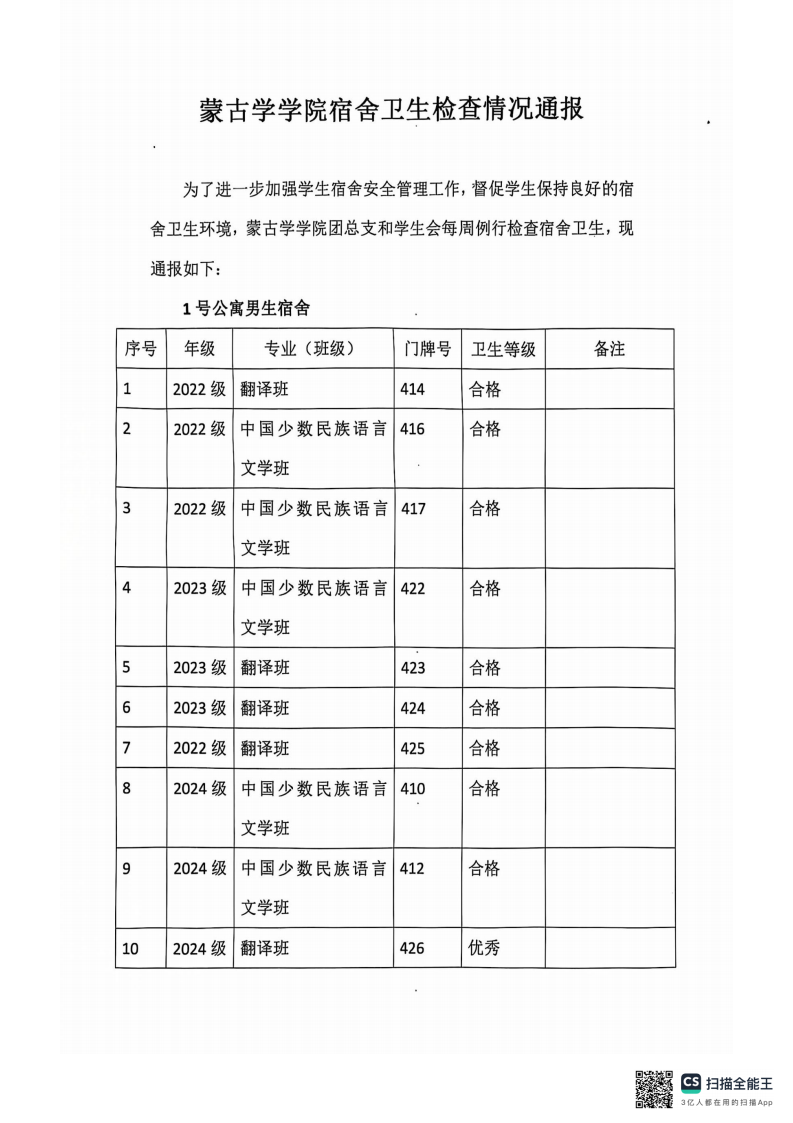 蒙古学学院宿舍卫生检查情况