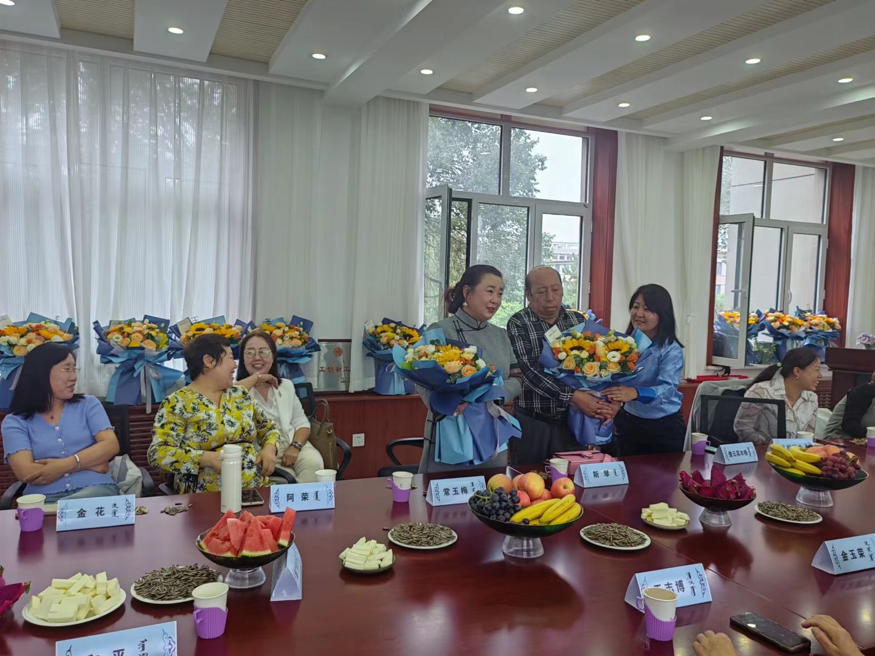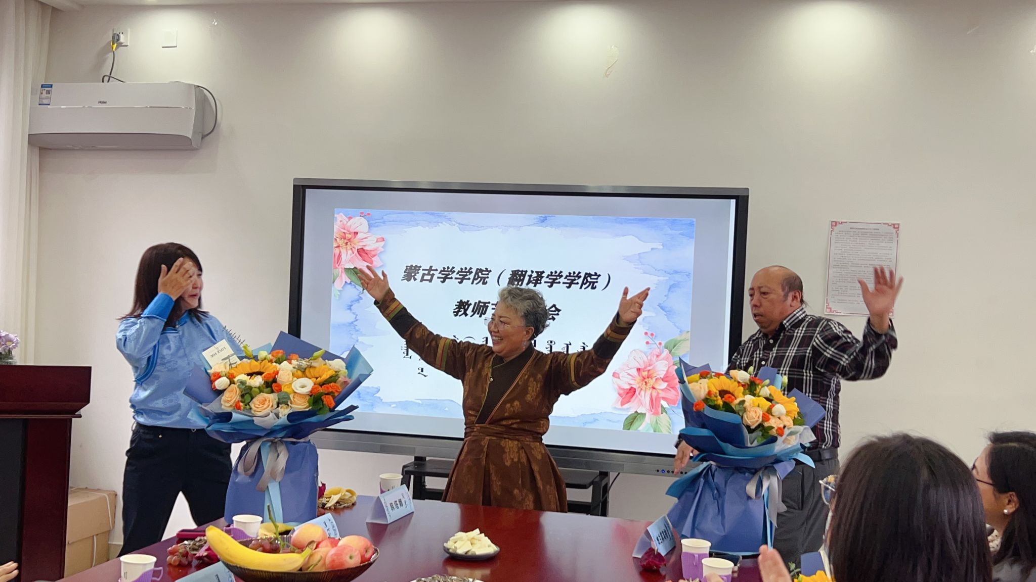蒙古学学院(翻译学学院、翻译研究中心)开展庆祝第39个教师节活动 2023-09-07 关心下一代委员会 次 今年是我国第39个教师节,也是党的二十大胜利召开后的第一个教师节。值此之际,为了营造尊师重教的良好氛围,激发全院教职工的奋进热情,让全院教职工感受到成就感、荣誉感、幸福感,积极投身教育强国建设实践,在蒙古学学院(翻译学学院、翻译研究中心)工会的精心组织与准备下,以茶话会的方式庆祝了这个意义非凡的节日。 茶话会开始,蒙古学学院(翻译学学院、翻译研究中心)各位教师互相送上节日的祝福,由老师们表演了自编的精彩节目,在欢声笑语和节日的鲜花中米乐官网全体教师欢度了第39个教师节。