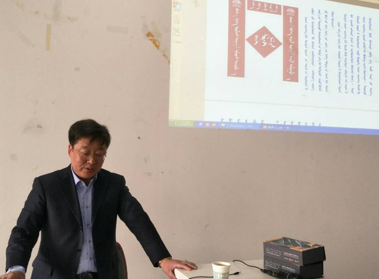 3月29日下午14时30分,蒙古语言文学系邀请中国社会科学院民族学与人类学研究所研究员、民族文字文献研究室主任、博士生导师曹道巴特尔博士作题目为《十九世纪蒙古文对联文献<对子汇集>及其价值》的专题学术报告。讲座由蒙古语言文学系副主任苏布道教授主持,蒙古语言文学系师生约100余人参加。