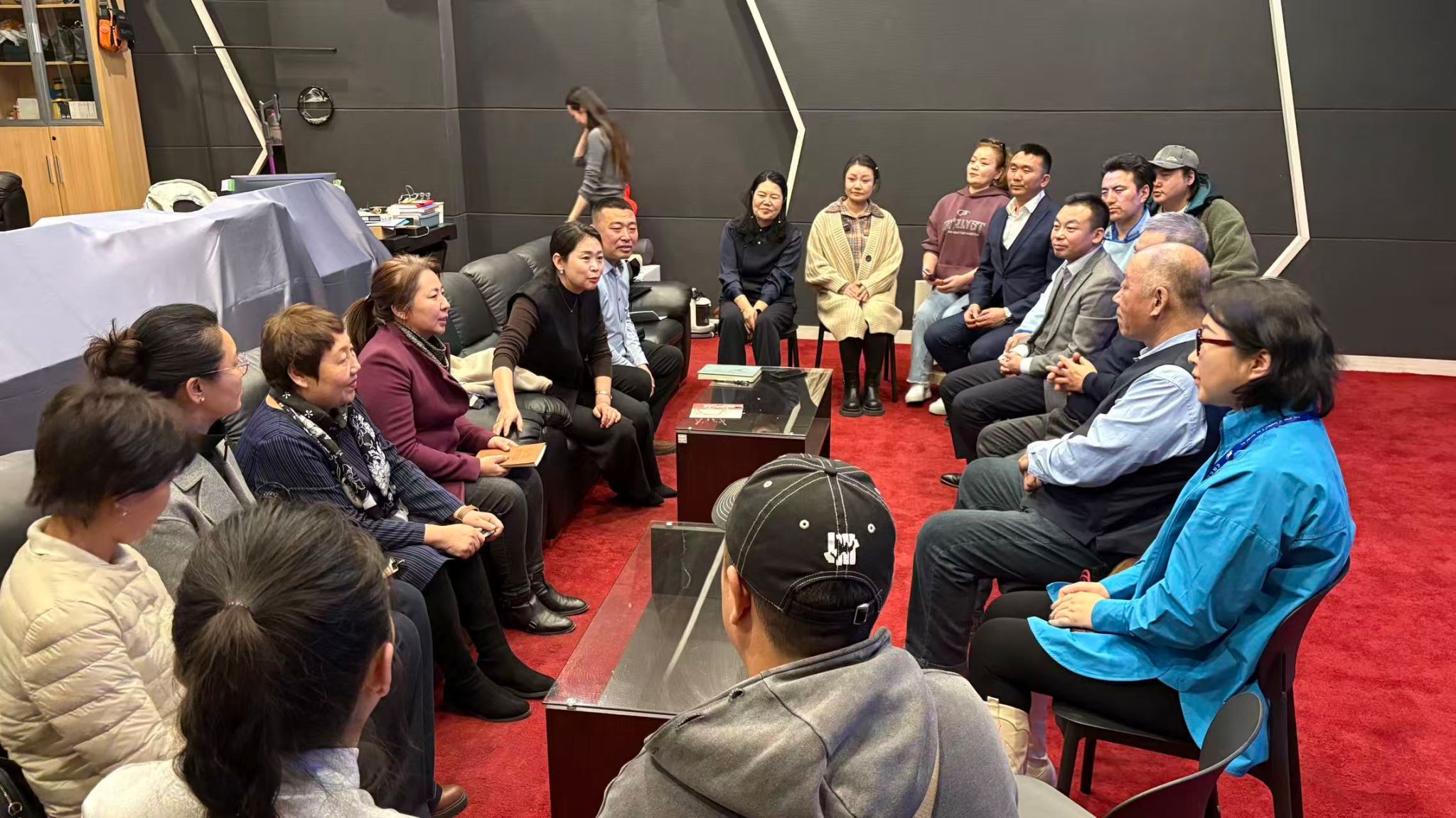 在座谈交流环节,内蒙古民族语电影译制中心党支部书记、总经理齐双宝致欢迎词并全面介绍了译制中心的发展概况、业务范围与人才需求。格根哈斯书记表示,希望以此次交流为契机,加强校企双方在人才培养、实践教学、实习就业等方面的深度合作。双方还围绕专业对接、资源共享、协同育人等内容开展自由交流,进一步凝聚合作共识,为后续校企务实合作奠定了良好基础。