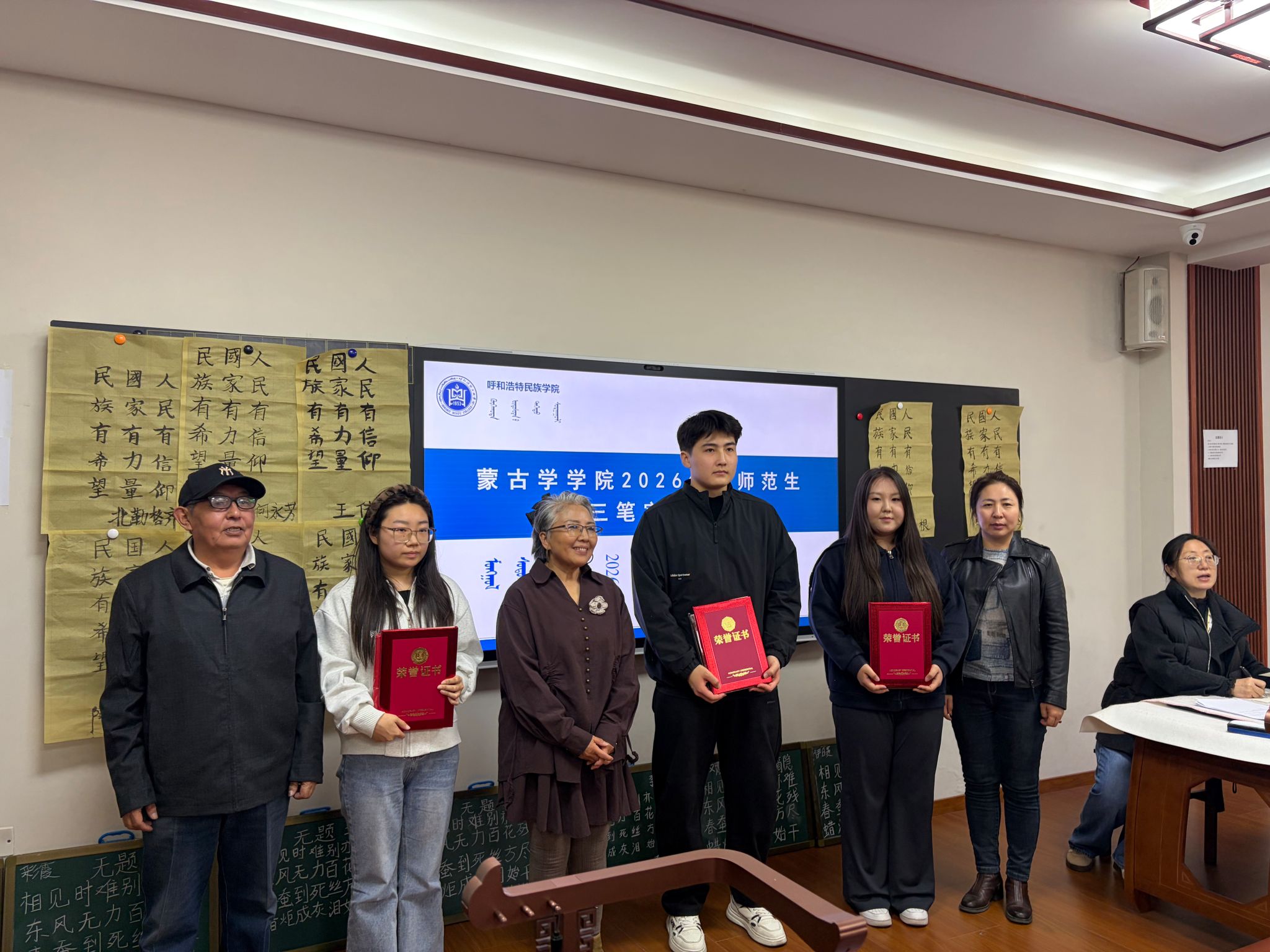 笔墨书经典,师范展风采。为响应学校关于开展师范生“三笔字”竞赛的通知要求,进一步提升师范生教学基本功,弘扬中华优秀传统文化,3月26日下午,蒙古学学院2026年度师范生“三笔字”竞赛在都林楼102室成功举办。学院领导、相关专业教师及参赛选手共同参与了本次活动。