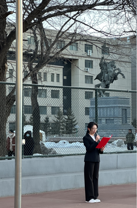 学生代表2021级民族学3班倪佳利同学在庄严的国旗下,发表了主题为“学习雷锋精神,争做时代青年”的演讲。在演讲中,她向学院学生充分展现了当代青年的社会责任感,号召同学们重视信念与价值的力量,刻苦求知、卓越创新,顺应时代的变化,不断吸取知识的养分,实现人生更好的成长。他提出在践行立信优良传统的同时,要胸怀家国,坚守初心,只争朝夕,不负韶华,不断为中华民族复兴、铸牢中华民族共同体意识添砖加瓦、增光添彩。