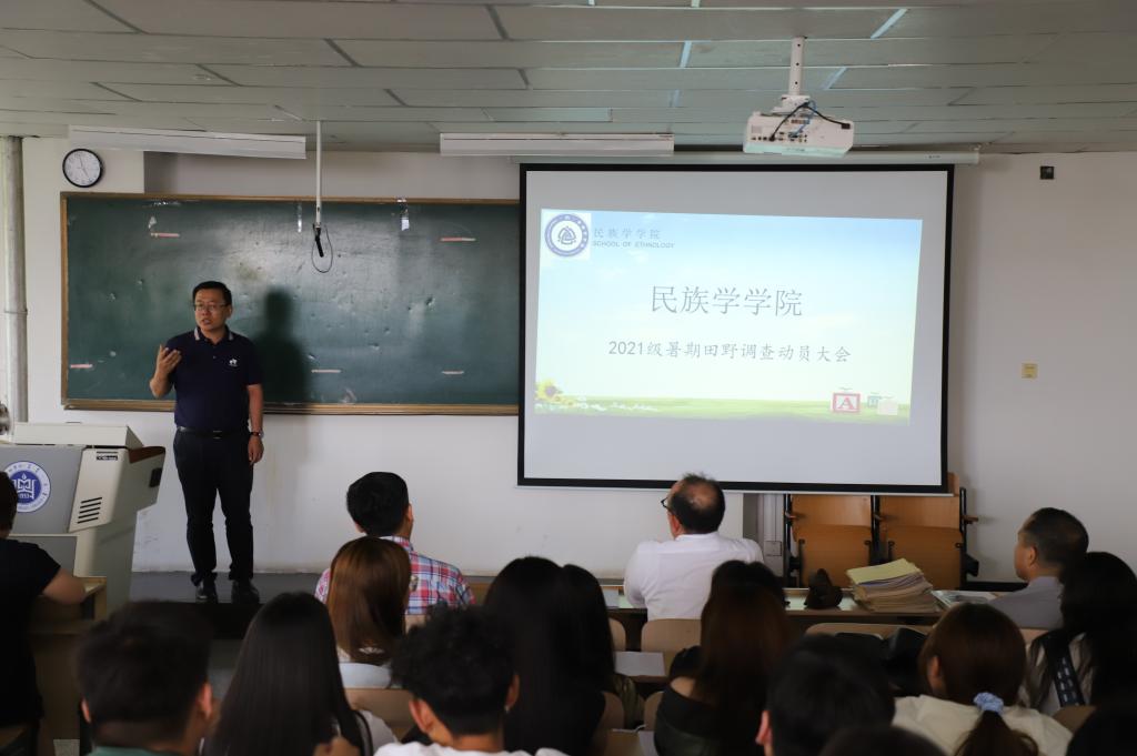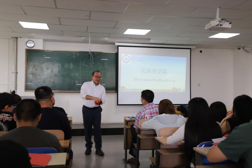 7月8日下午16时,民族学学院召开2021级暑期田野调查动员大会。学院领导班子、指导教师、班主任、辅导员及2021级民族学专业全体学生参加活动。活动由院长青斯琴主持。