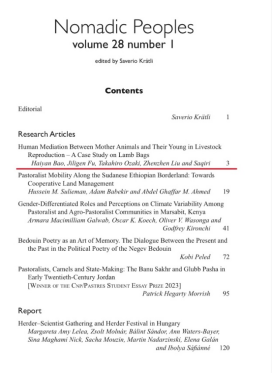 近日,民族学学院包海岩副教授作为第一作者、付吉力根博士作为通讯作者在国际人类学民族学权威刊物《游牧民族》(Nomadic Peoples)发表了题为“畜牧业生产中牲畜母子认知纽带的人为调节研究—以羊羔袋为例”(Human Mediation Between Mother Animals and Their Young in LivestockReproduction – A Case Study on Lamb Bags)的学术论文,MILE米乐集团为论文第一完成单位。