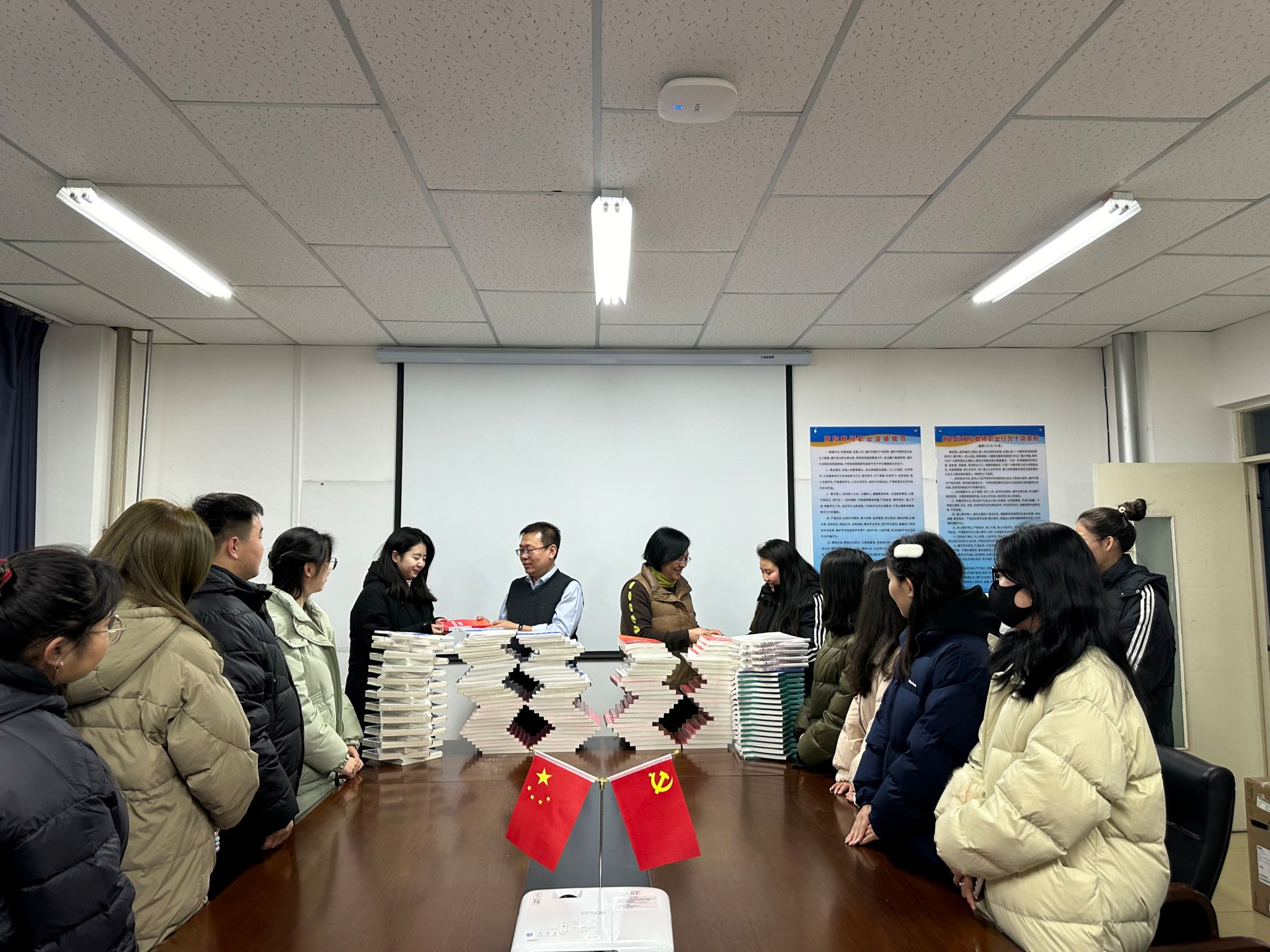 此次活动不仅为同学们带来了寒冬里的一丝温暖,赠送的书籍种类也很多,包括公考历年真题解析、公考教材、公考时政热点1200题、时政理论、选调生考试用书、三支一扶备考材料等400余本。同学们纷纷表示,他们也会继续努力,不辜负学院的殷切期望。