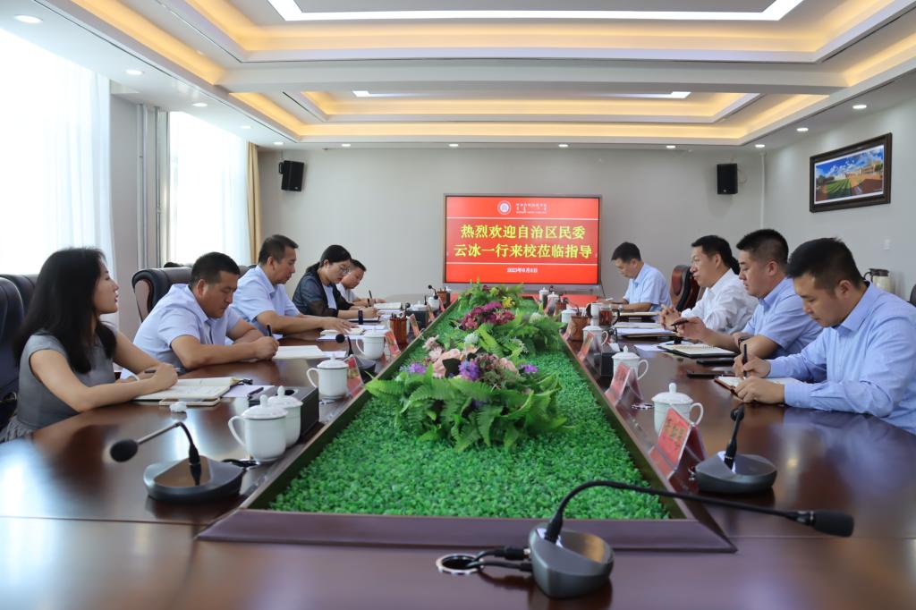 9月6日下午,自治区民委党组成员、专职委员云冰一行来米乐官网调研指导铸牢中华民族共同体意识研究基地建设工作情况。学校党委书记、学校铸牢中华民族共同体意识研究基地主任刘九万主持座谈会。