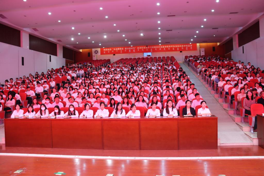 为深入学习贯彻习近平总书记对内蒙古的重要指示精神,按照自治区党委统一安排,9月5日上午,“永远跟党走 建功新时代”自治区理论学习轻骑兵示范宣讲团第一小分队来校开展宣讲工作。机关党委各党支部成员、思政课教师、各二级学院党总支书记、辅导员、班主任以及学生代表共计500余人到会聆听。校党委副书记胡春梅主持宣讲报告会。