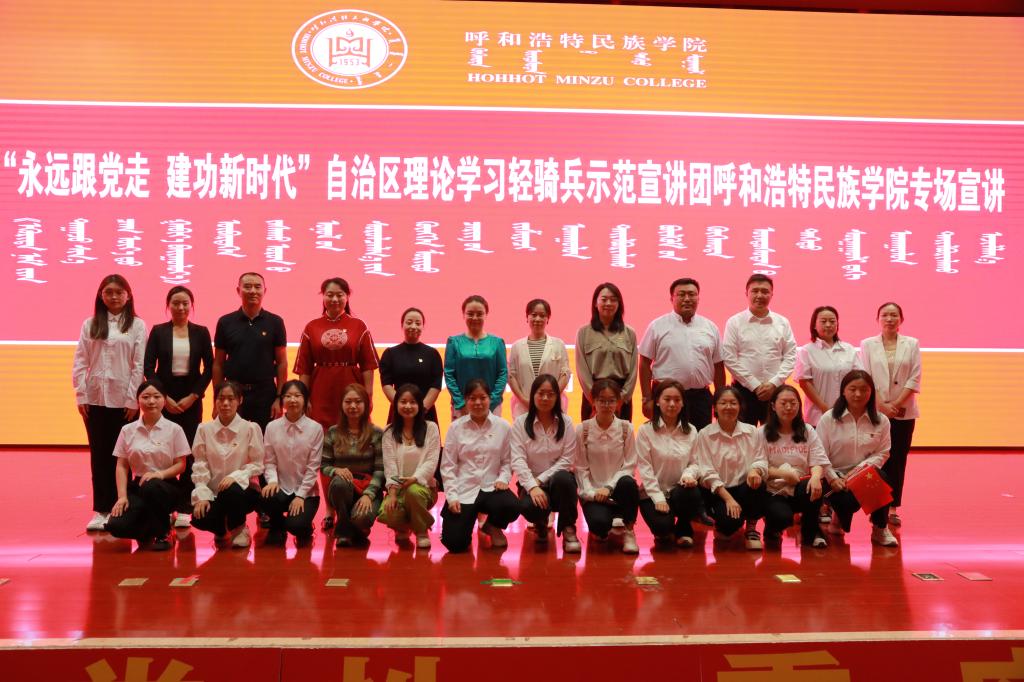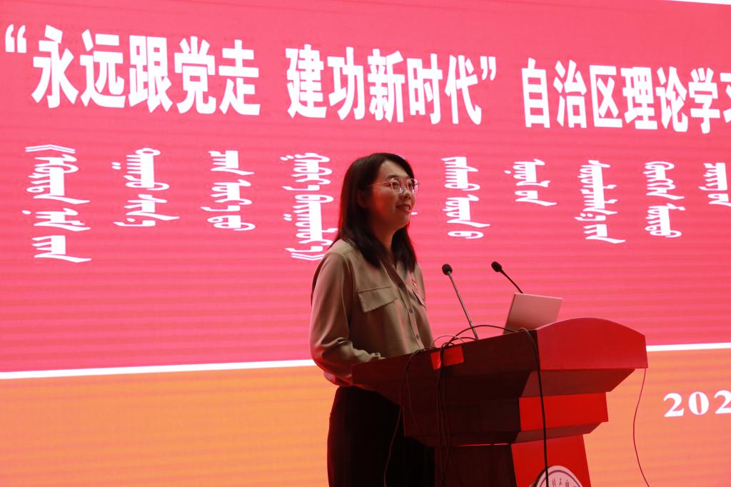 党的二十大代表、鄂尔多斯市准格尔旗迎泽街道南苑社区党支部书记、居委会主任邓郁,巴彦淖尔市乌梁素海海区管理大队大队长刘文斌,通辽市委党校基础理论与党史党建教研室副主任赵淑芳副教授,内蒙古建筑职业技术学院马克思主义学院教师张静,内蒙古医科大学马克思主义学院副院长王彦副教授,内蒙古农业大学职业技术学院旅游管理系党总支书记贺斐副教授等六位宣讲团成员结合自身学习工作经历和实践体会收获,分别以《扎根基层 向阳而生》《牢记总书记嘱托,呵护好乌梁素海这颗“塞外明珠”》《站在草原望北京》《只此青绿:北疆防沙治沙的代代坚守》《以改革创新推进内蒙古现代化建设》《我们仨的大学梦》为题作了精彩宣讲。