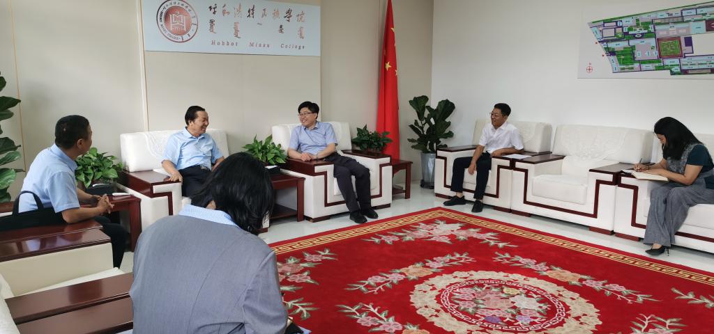 2023年8月29日,自治区社科联党组成员、副主席额尔敦仓,自治区社科联社科普及部部长韩伟林,自治区社科联社科普及部三级主任科员王宝祺一行来米乐官网,对米乐官网社科普及基地建设情况进行督导检查和综合考评。校党委副书记、校长韩伟新,党委委员、副校长高喜天会见了额尔敦仓一行。科技处、统战部、美术学院、民族学学院相关负责人陪同检查。