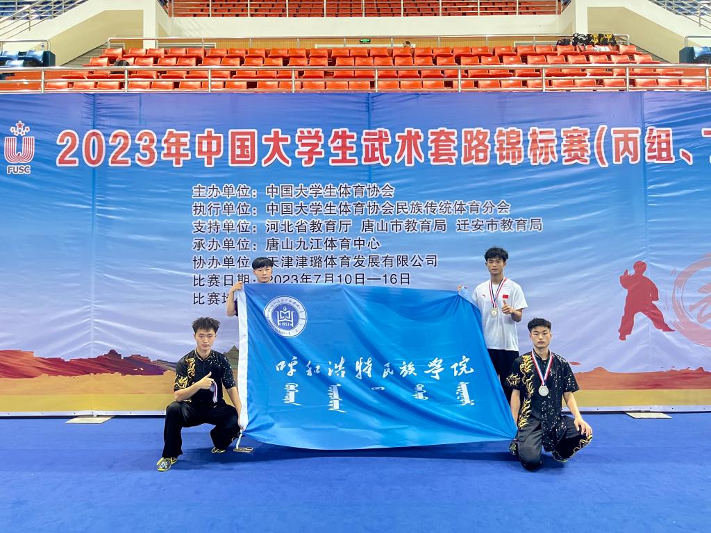 由中国大学生体育协会主办,中国大学生体育协会民族传统体育分会执行,唐山九江体育中心承办的2023年中国大学生武术套路锦标赛(丙组、丁组)于7月10—16日举行,本次比赛共有来自北京体育大学、复旦大学、北京邮电大学等50余所高校的近500名运动员参赛。 米乐官网选派的4名运动员在男子丙A组的对练项目比赛中获得了第二名的好成绩,展现了呼民院学子的风采。