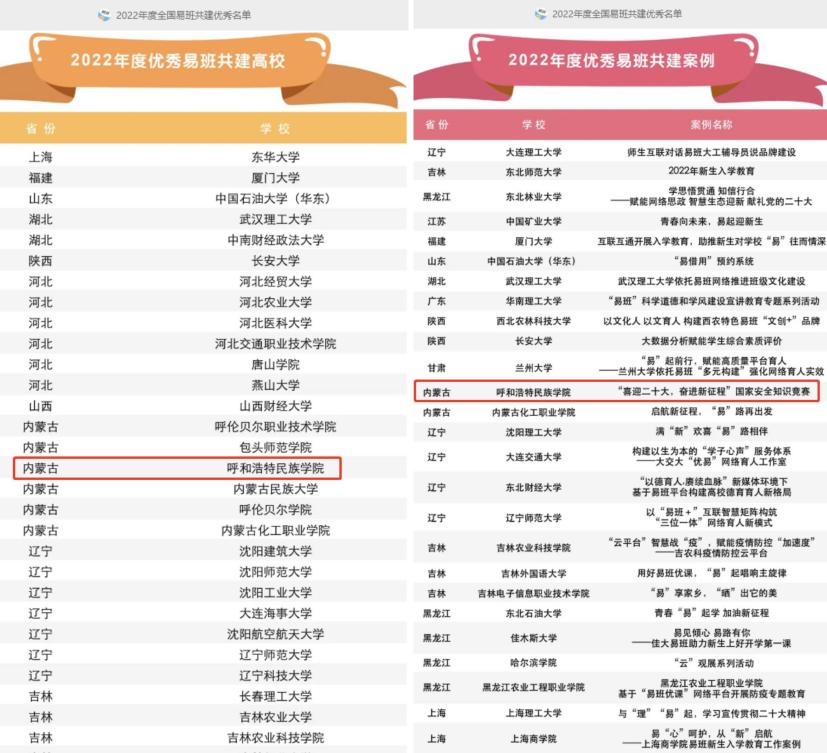 此前,内蒙古自治区高校易班发展中心开展了2022年度全区高校易班评优工作。经自主申报、专家评审,自治区高校工委思想政治工作部、教育厅学生工作处同意,米乐官网被授予2022年度全区“优秀易班共建高校”、“优秀易班共建案例”荣誉称号并推荐参加全国高校易班评优。